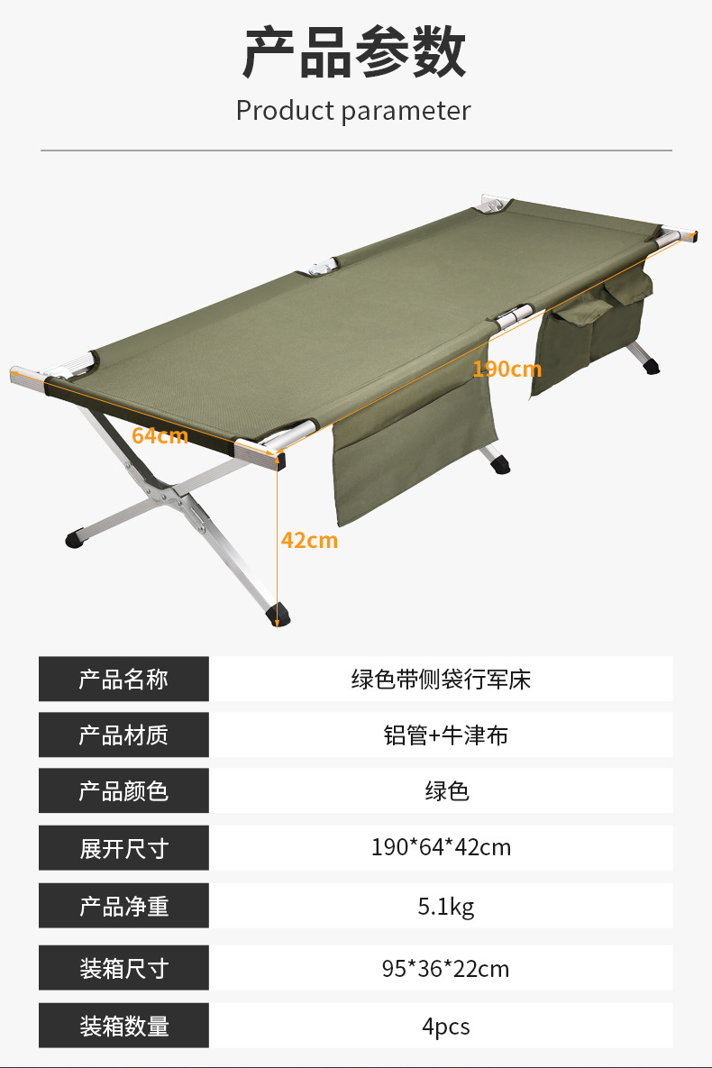 Номер товара Green camp bed with side pockets