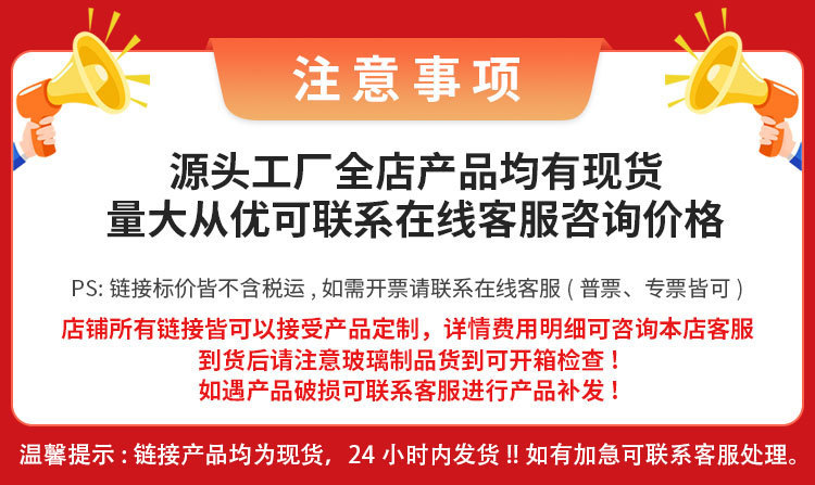 尊敬的客户,感谢您选择我们源头工厂的玻璃产品!为确保交易顺利进行,保障您的权益,请您仔细阅读以下注意事项: