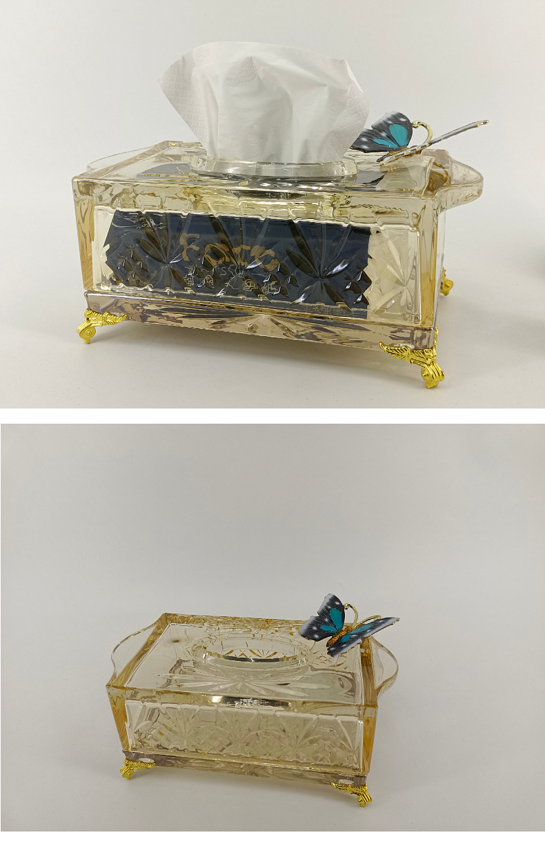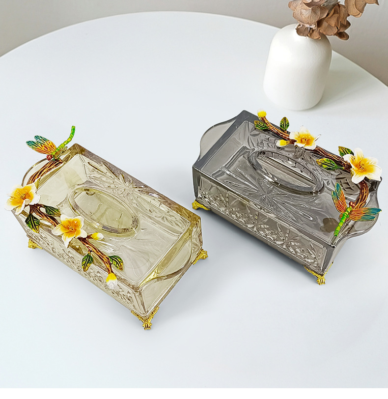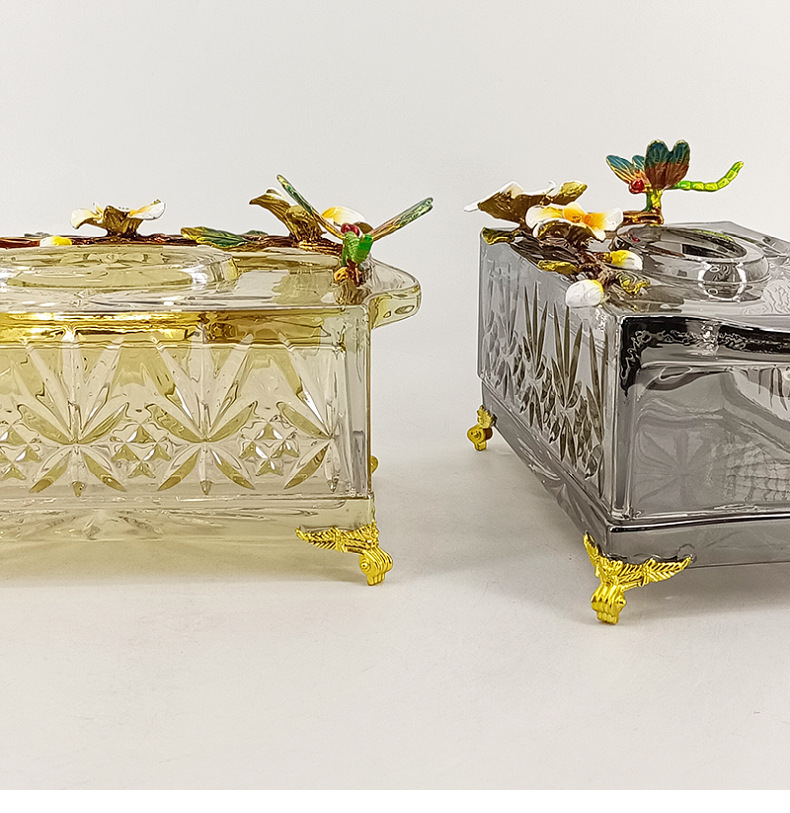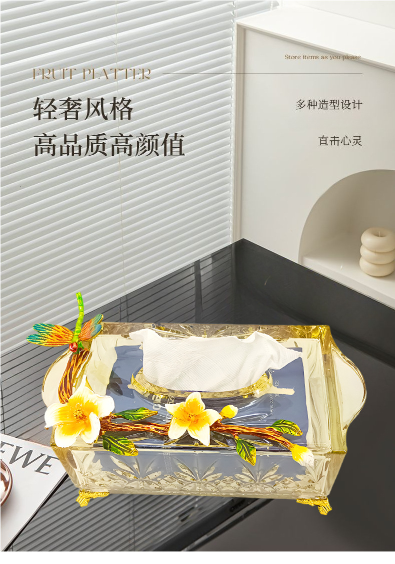 Элитная легкая роскошная коробка для салфеток, креативная бумажная коробка для дома, американское стекло, электроплакированный янтарный контейнер для хранения бумаги