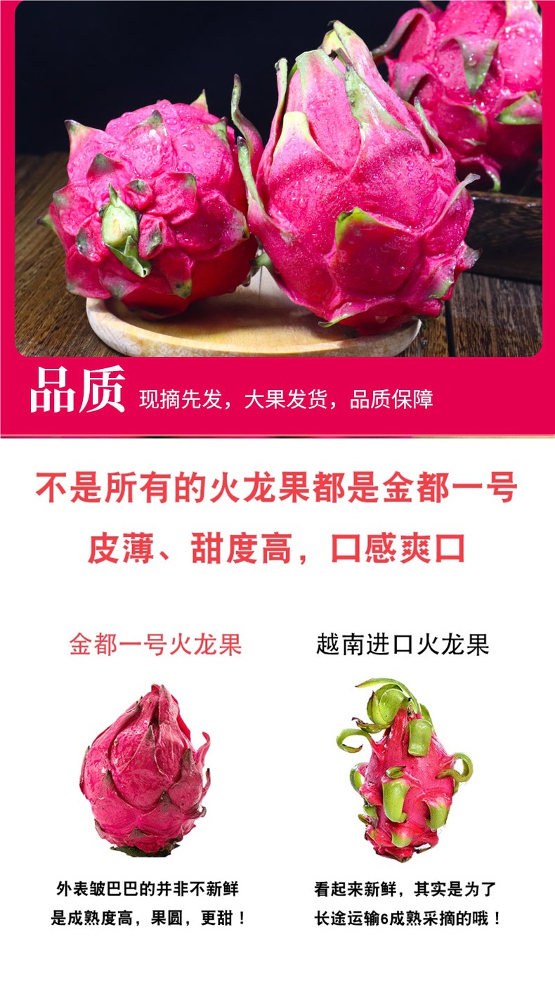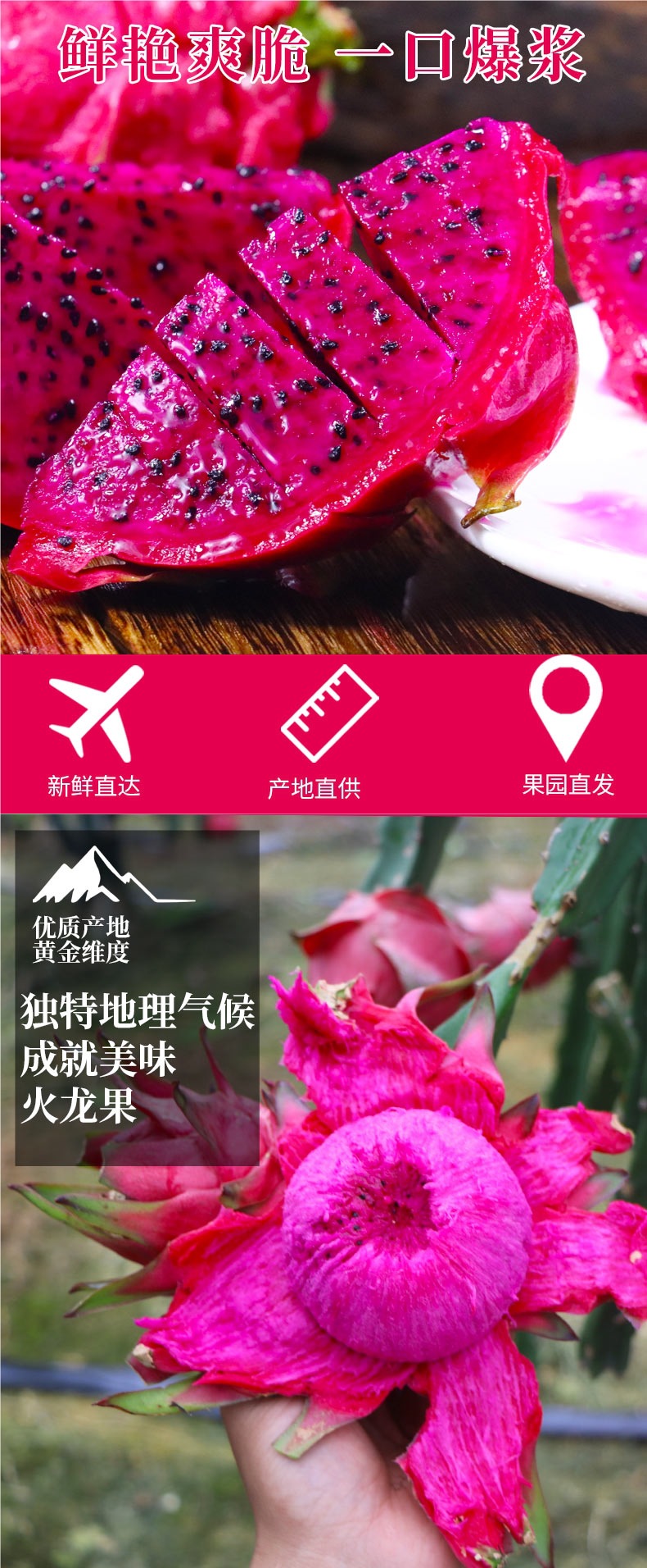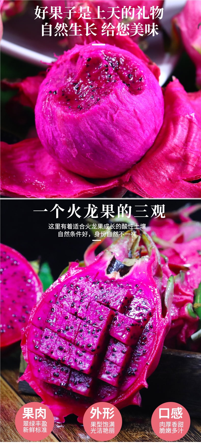 Свежесобранный красный драгон фрукт 2.5кг Дзинду №1 Свежесобранный свежий сезонный фрукт Красный драгон фрукт Красная мякоть Целая коробка Бесплатная доставка