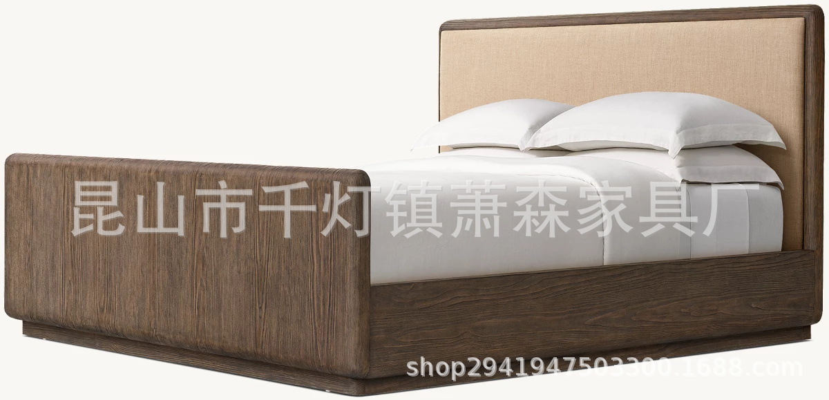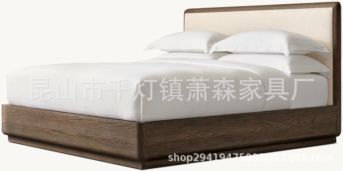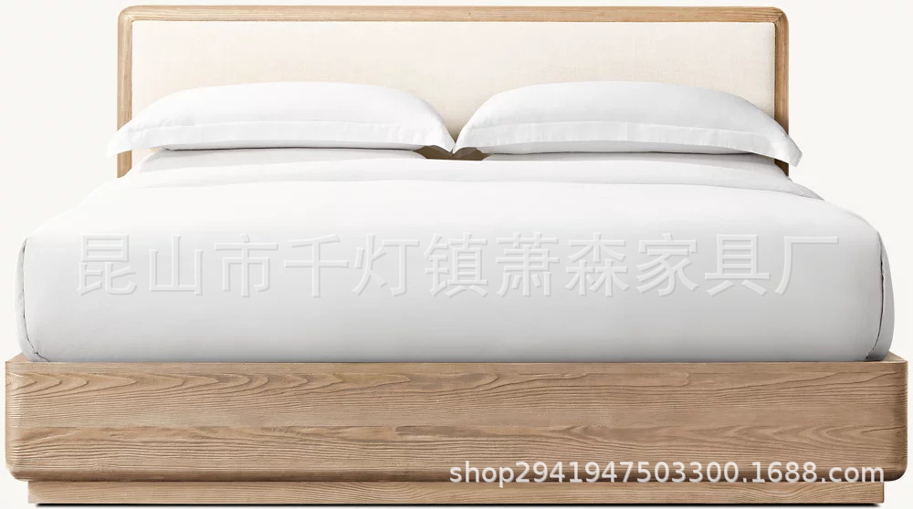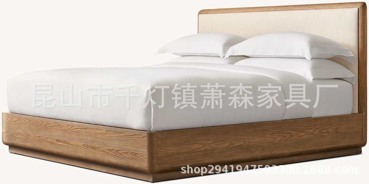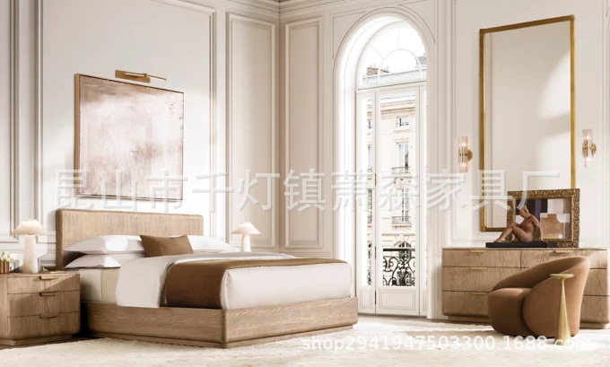 Американская кровать из массива дерева, винтажная двойная кровать 1.8м, французский стиль, 1.5м обитая, индивидуальная мебель