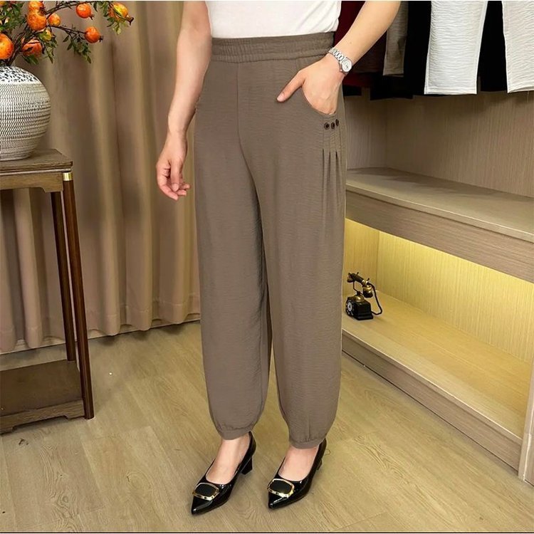 Брюки из льняного шелка больших размеров для женщин на лето, высокая талия, стройнящие, укороченные, для матерей среднего и пожилого возраста