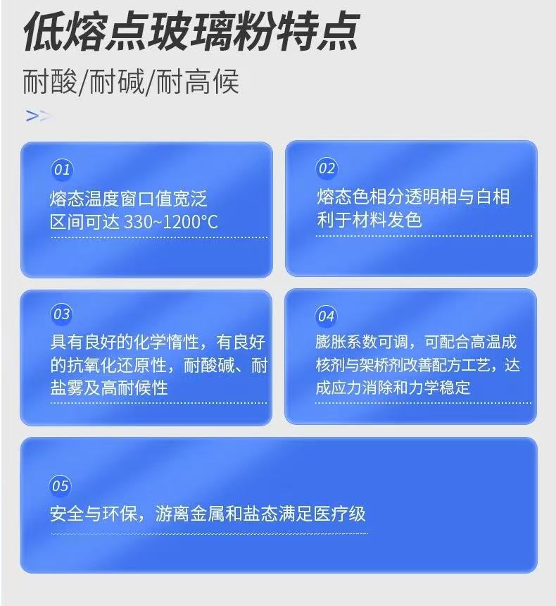 Безсвинцовый низкоплавкий низкотемпературный стеклянный порошок, наполнитель для резины, металлические чернила, керамическая сварка, неорганический стеклянный порошок