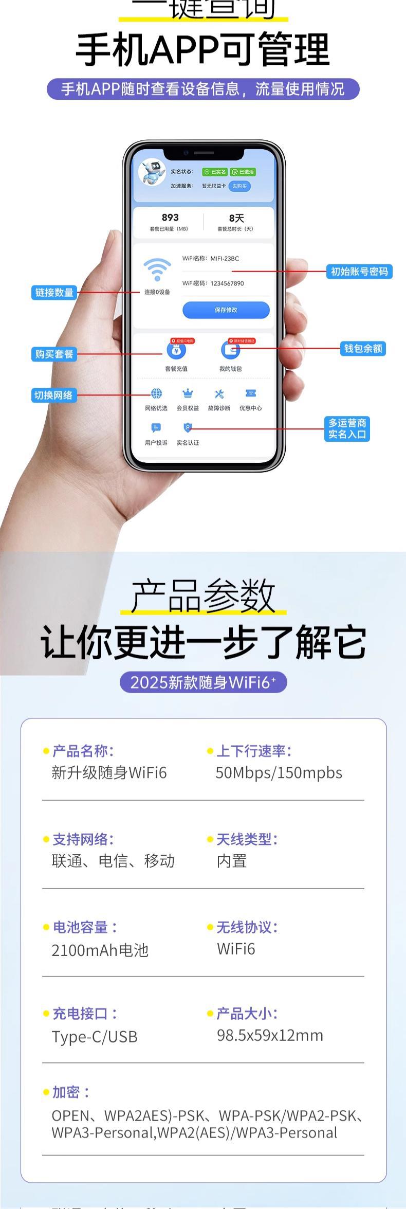 Новый портативный Wi-Fi роутер 2025 года, беспроводная сеть Wi-Fi6, безкарточный роутер