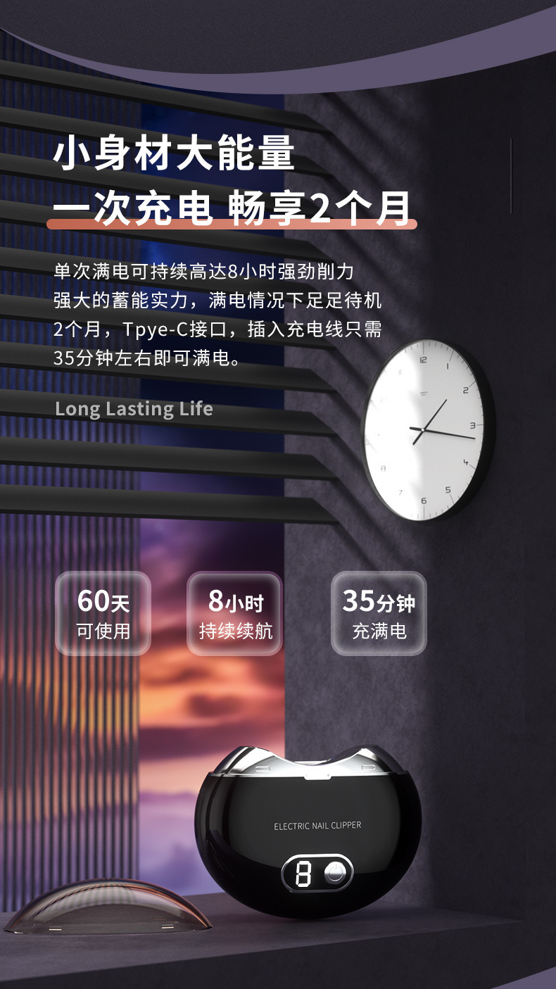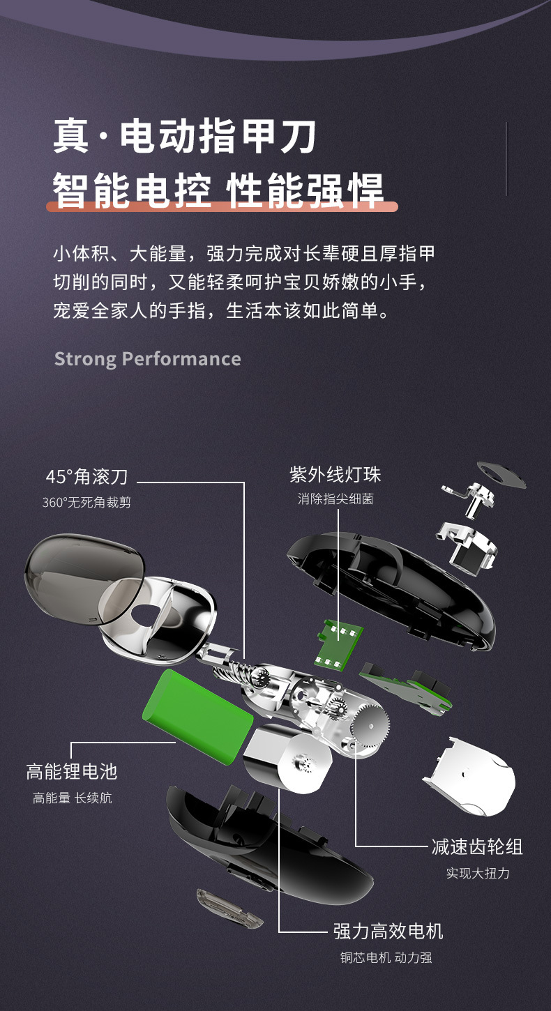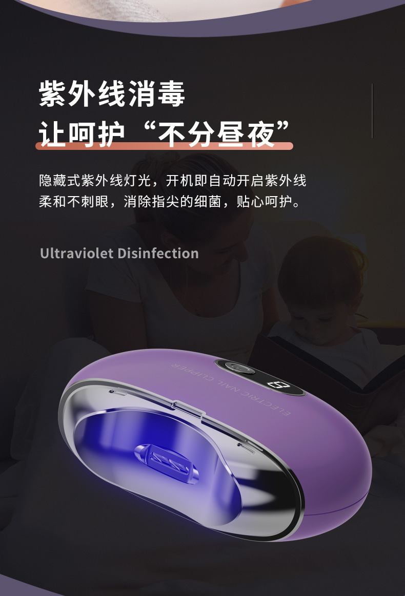 Компактные электрические ногтевые ножницы, УФ-дезинфекция маникюра, перезаряжаемый полировщик ногтей, безопасные ножницы для пожилых и детей