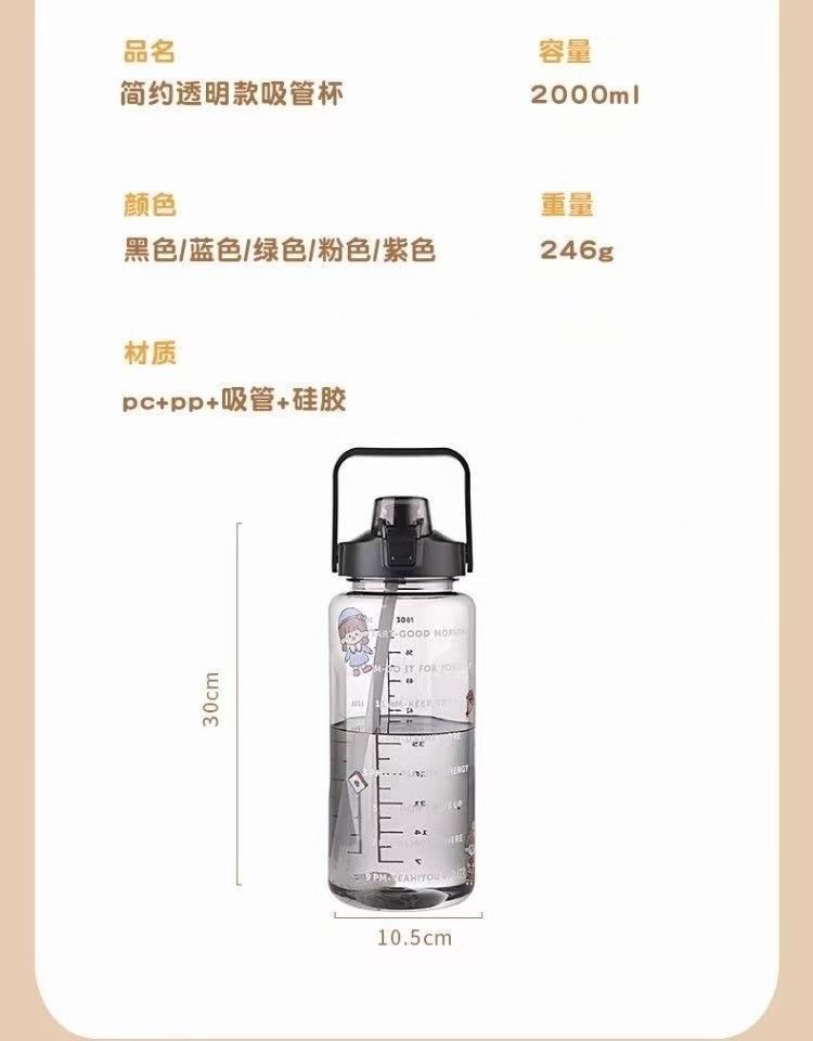 Спортивный стакан, большой объем, термостойкий, с соломинкой, портативный