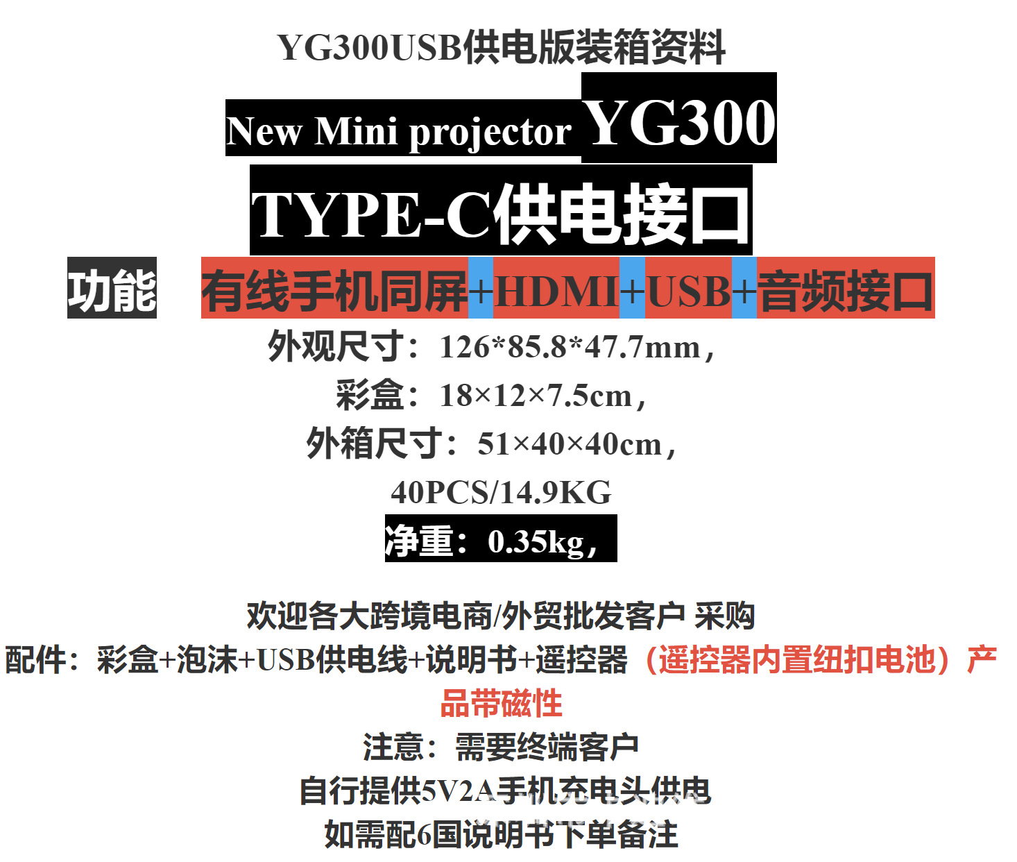 Новый Yg300 проводной проектор с дублированием экрана, Type-C, LED, портативный, микро мини, высокое качество проекции
