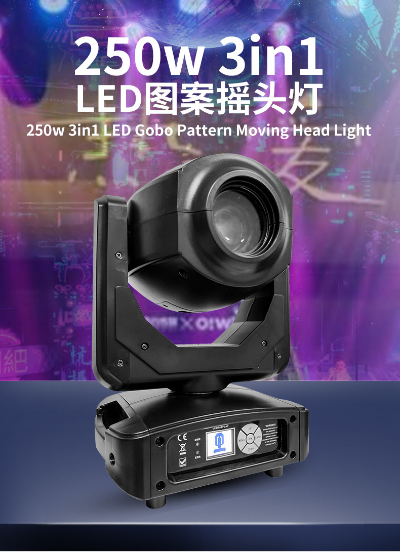 LED паттерн, движущийся светильник, 250W, бар, банкет, атмосферный, поворотный, яркий свет