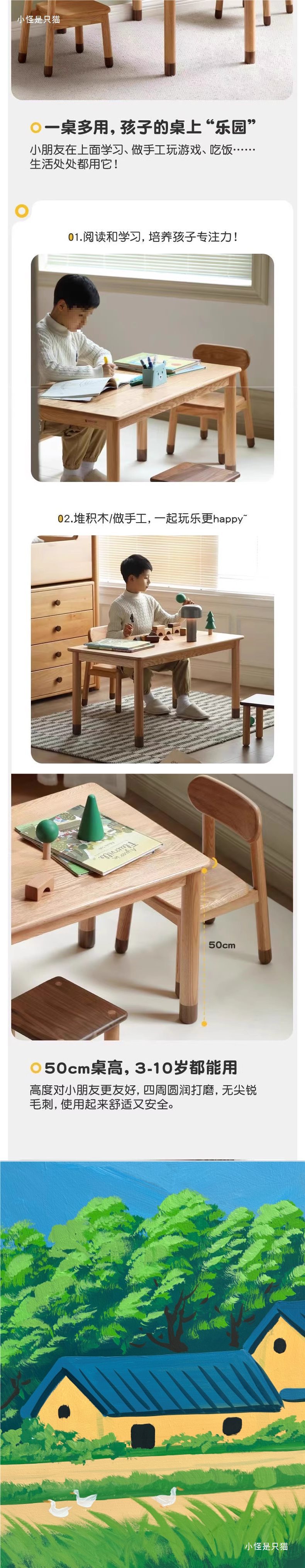 Массивный деревянный ручной стол, резиновое дерево, детский учебный стол, детский сад, современный, простой, стол для письма, игрушечный стол для дома
