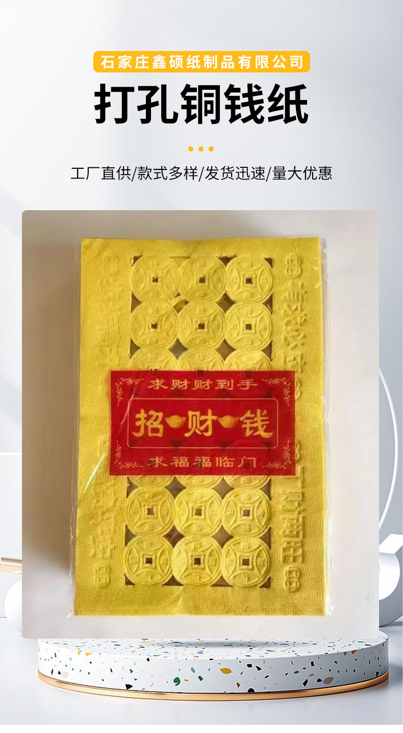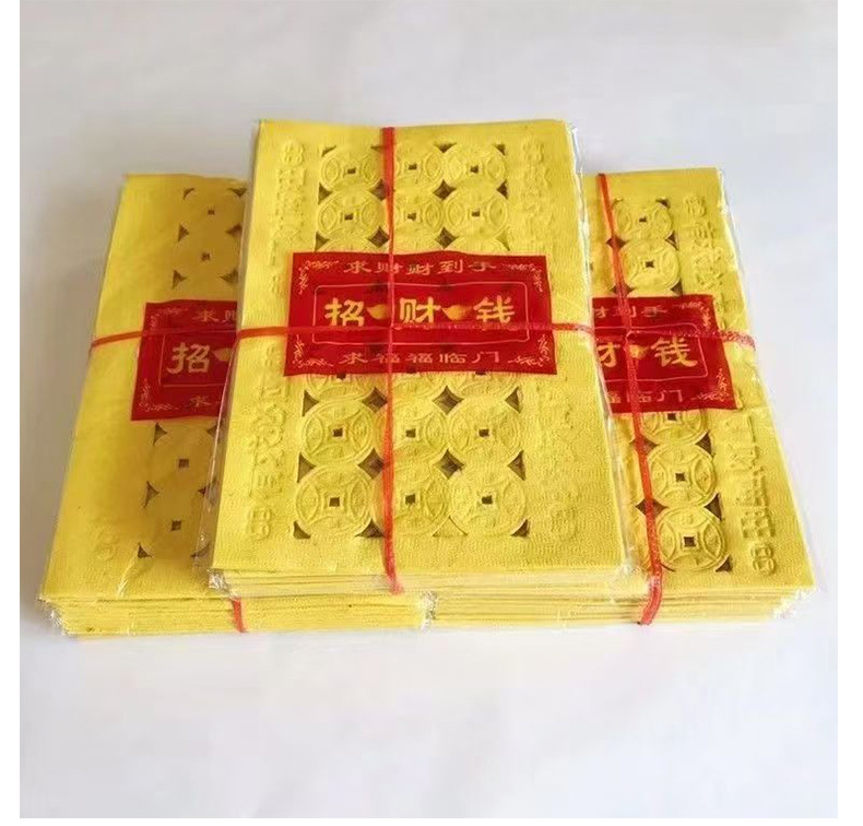 Смятая бумага с перфорацией для сжигания денег, жертвоприношений, принадлежностей для могил, желтая перфорированная бумага с монетами