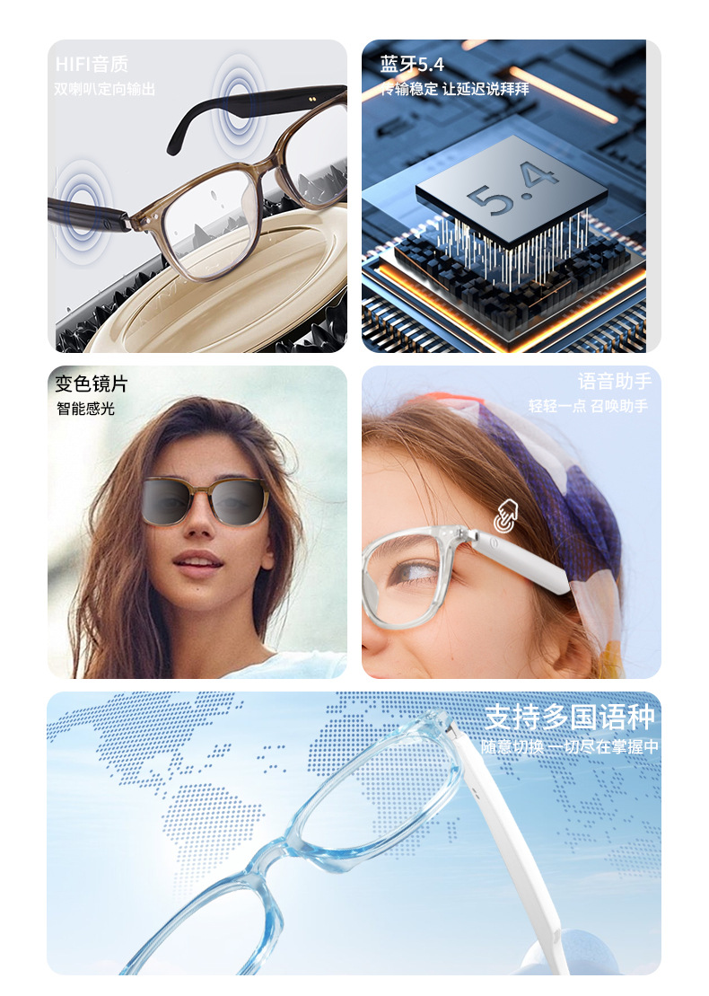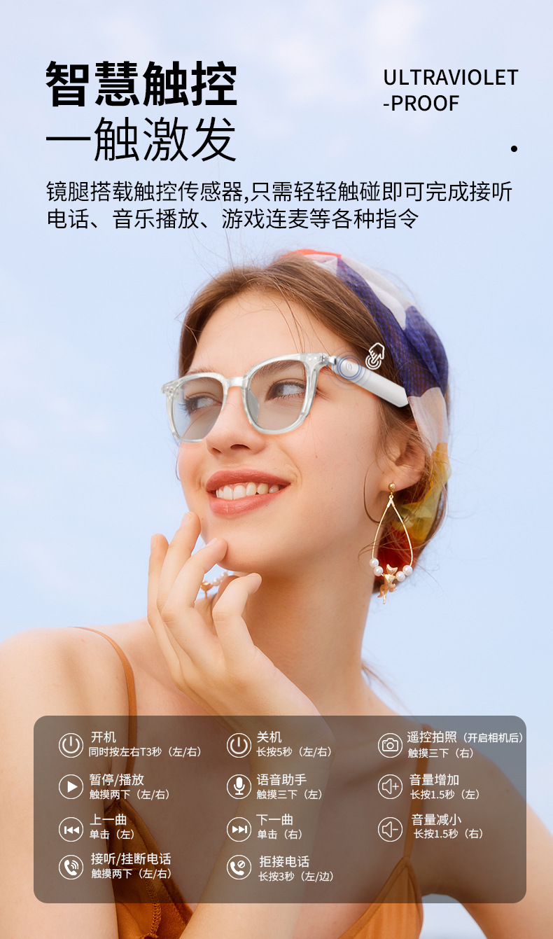 Кросс-бордерные умные Bluetooth очки, поляризованные, против UV и синего света, прослушивание музыки и звонки, прозрачные линзы GS-07