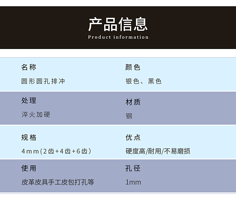 ![]() | Black row punching punch 4mm 6 teeth | ¥22.4 / ≈ 272 ₽ | 500 | 5808870940510 | |