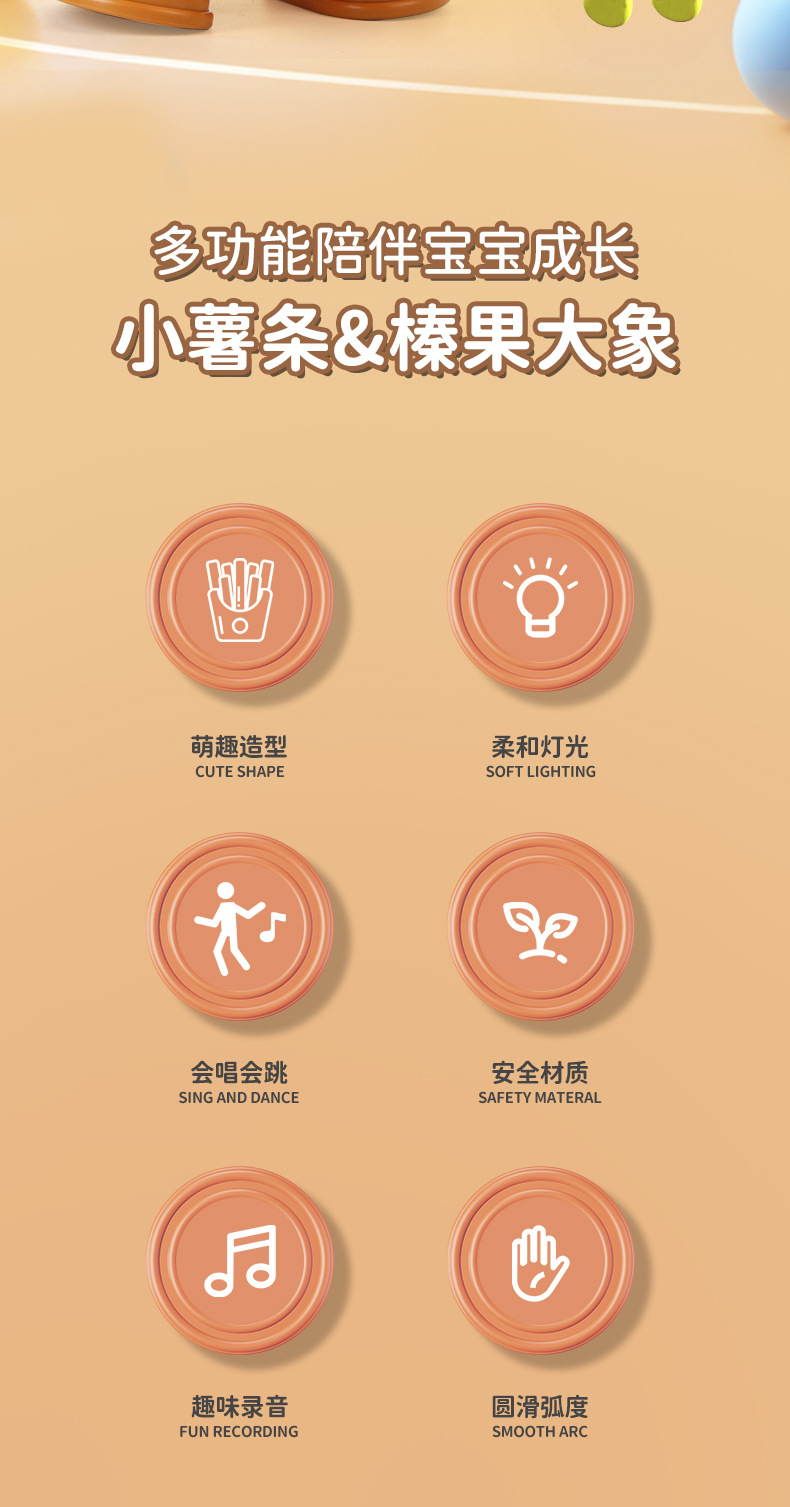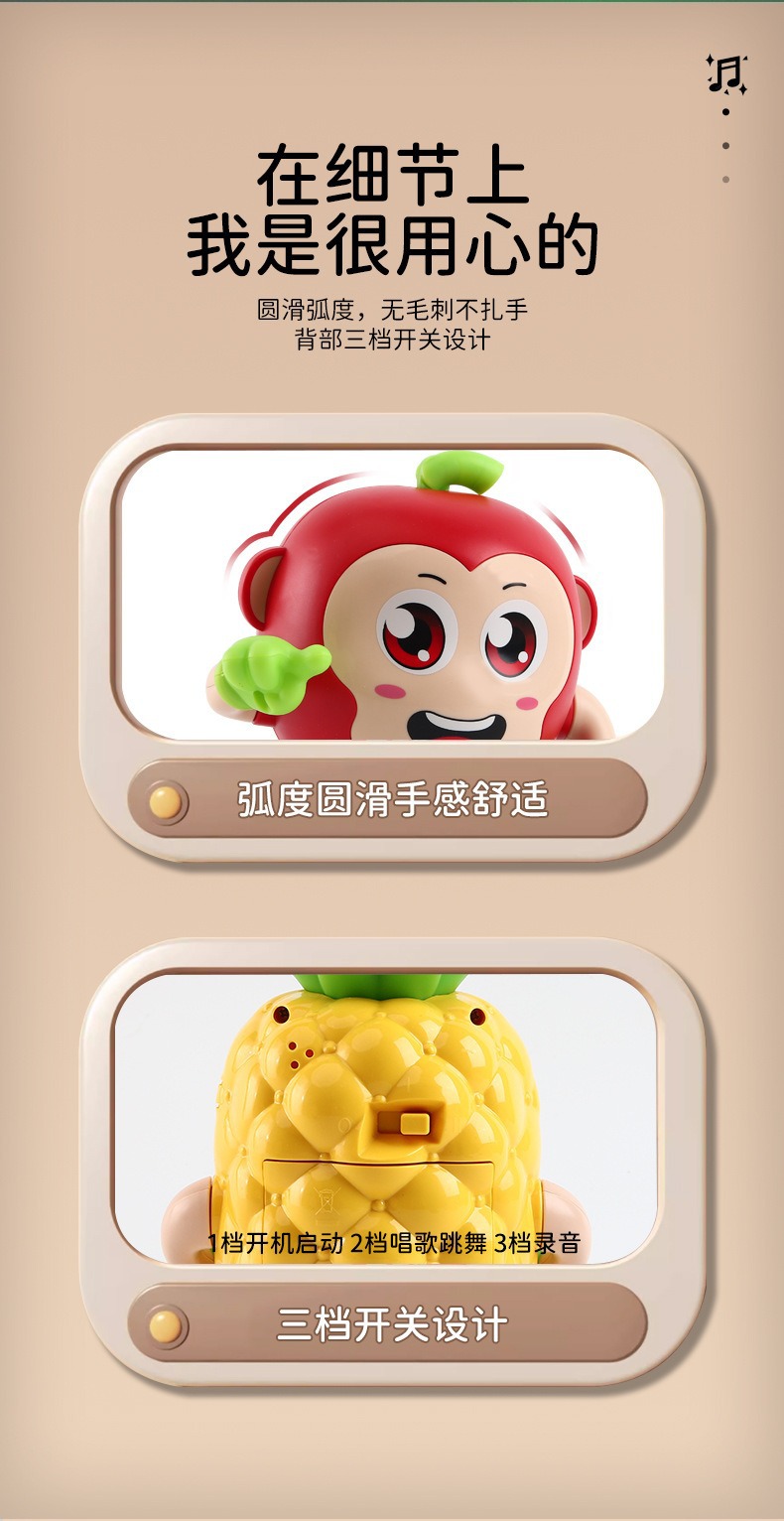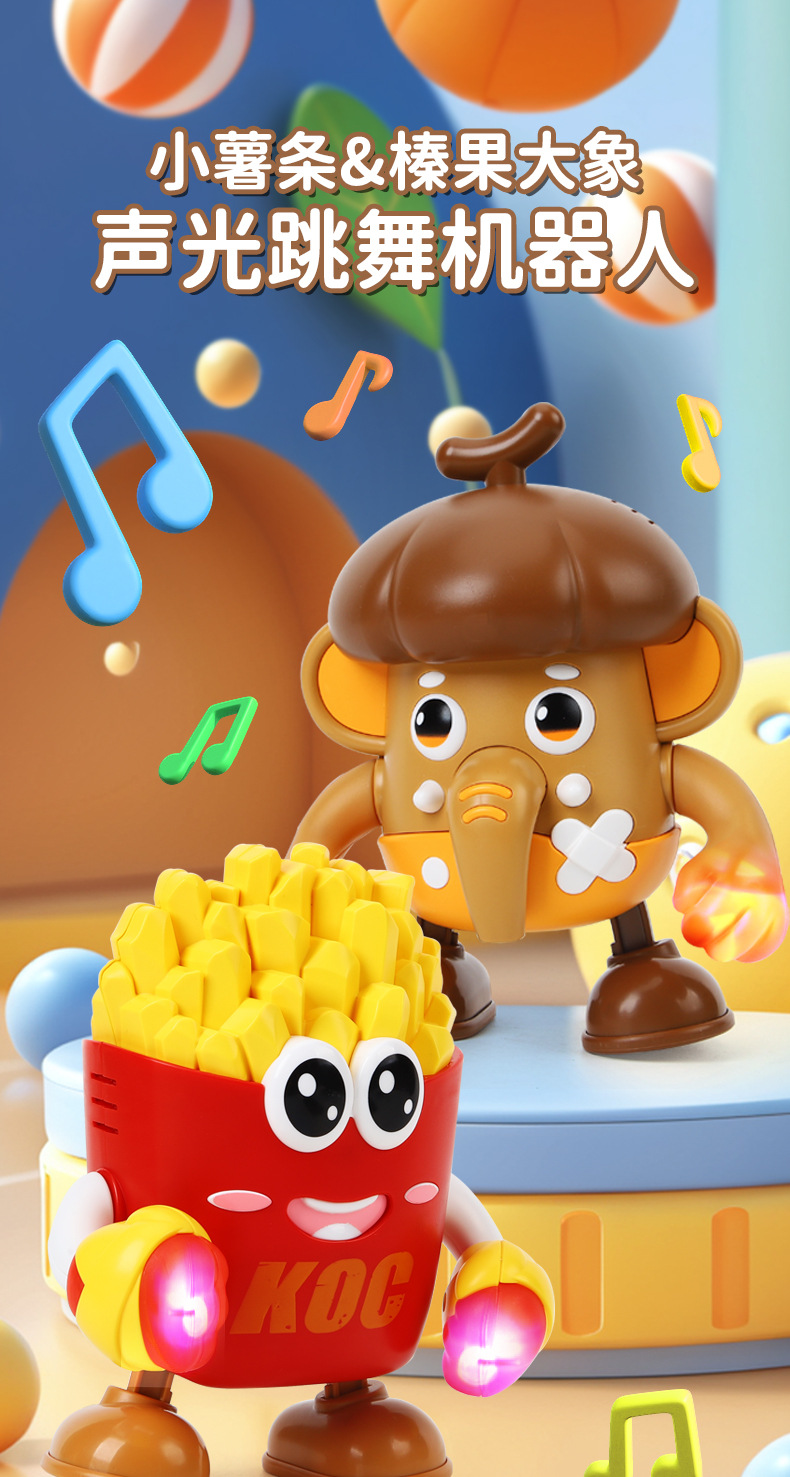 Кросс-бодер 2025 новый электрический поющий и танцующий кукла маленький картофельный слон фруктовый робот музыка детские игрушки