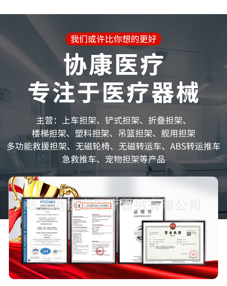 Цель The stretcher surface is detachable and has a locking device. the height of the stretcher can be adjusted in three levels: 90cm, 79cm, and 68cmOnly one person is needed to push the stretcher to save