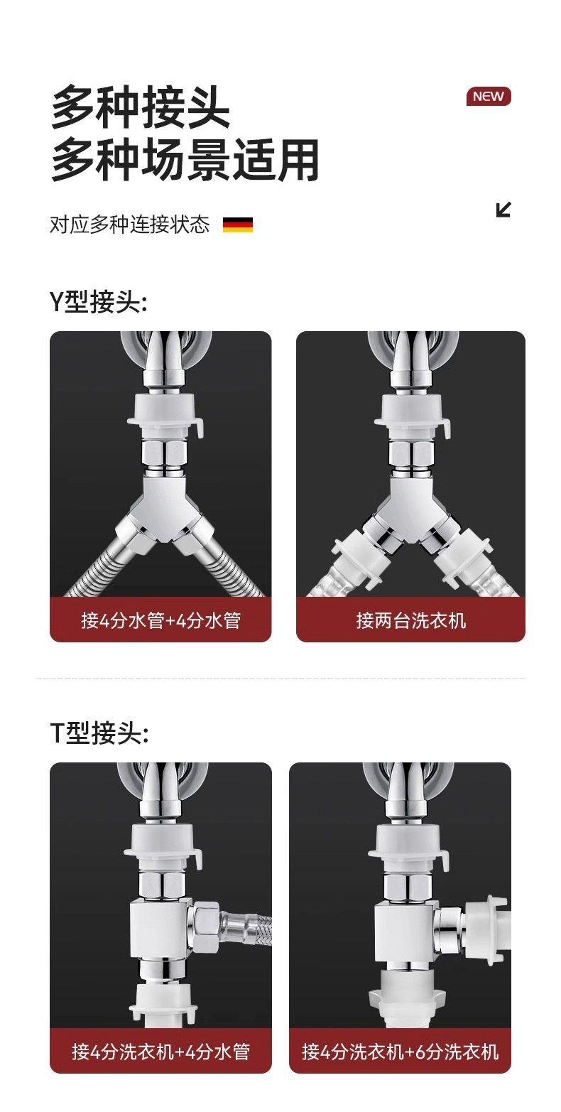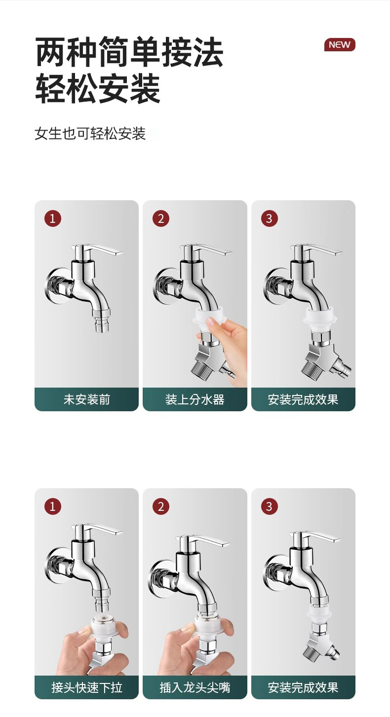 ![]() | [refined copper thickening] t-shaped tee★Quick connector (4-point washing machine nozzle + 4-point interface) | ¥8.9 / ≈ 108 ₽ | 5995 | 5810446584004 | |