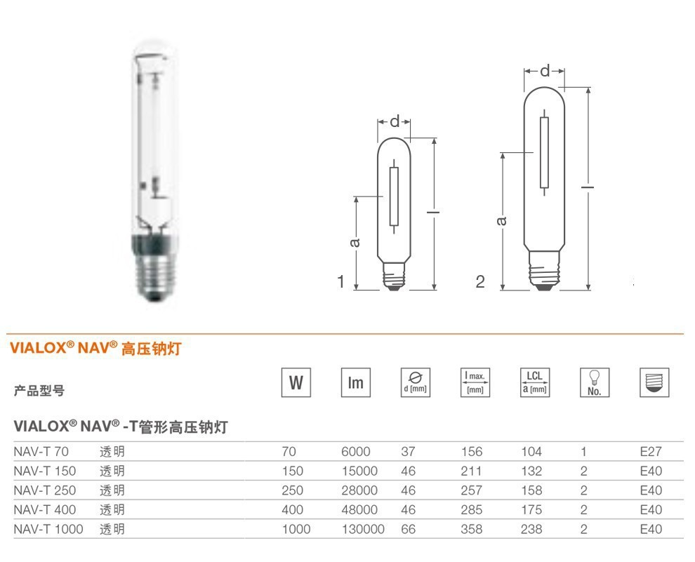 Лампа натриевая высокого давления Osram Nav-T 70W100W150W250W400W1000W