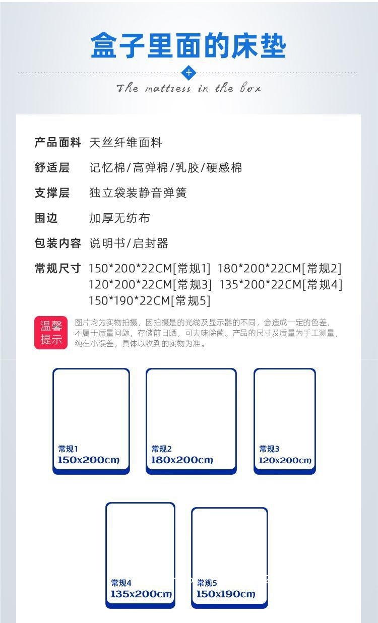 Синий матрас из мемори-фоама Box Simmons, рулонный, сжатый, вакуумный, латексный, утолщенный, мягкий, двойного назначения