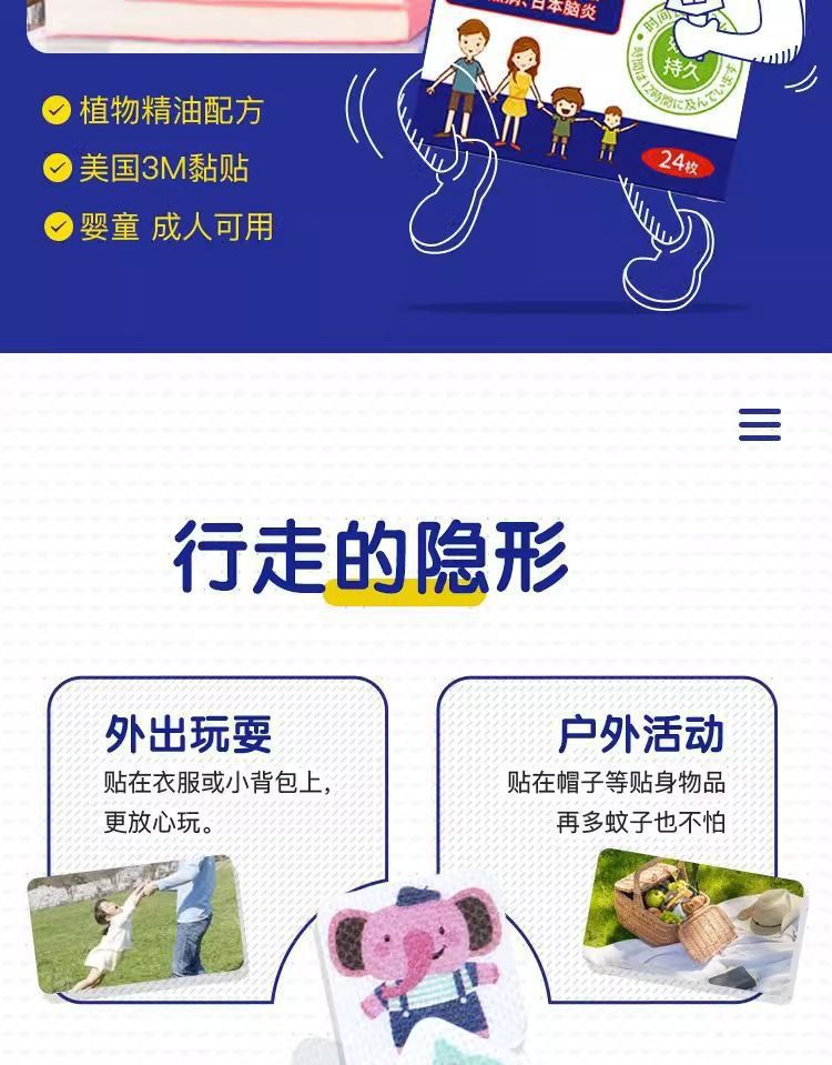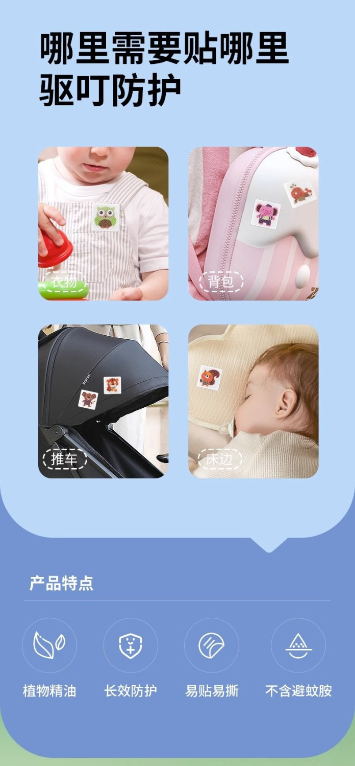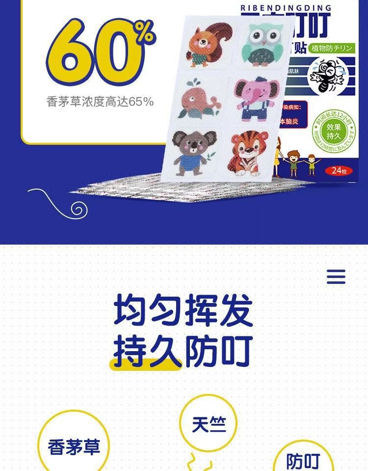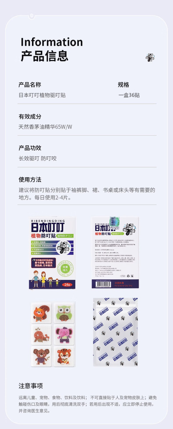 日本叮叮驱蚊贴卡通植物��茅精油婴儿儿童孕妇随身携带贴代发