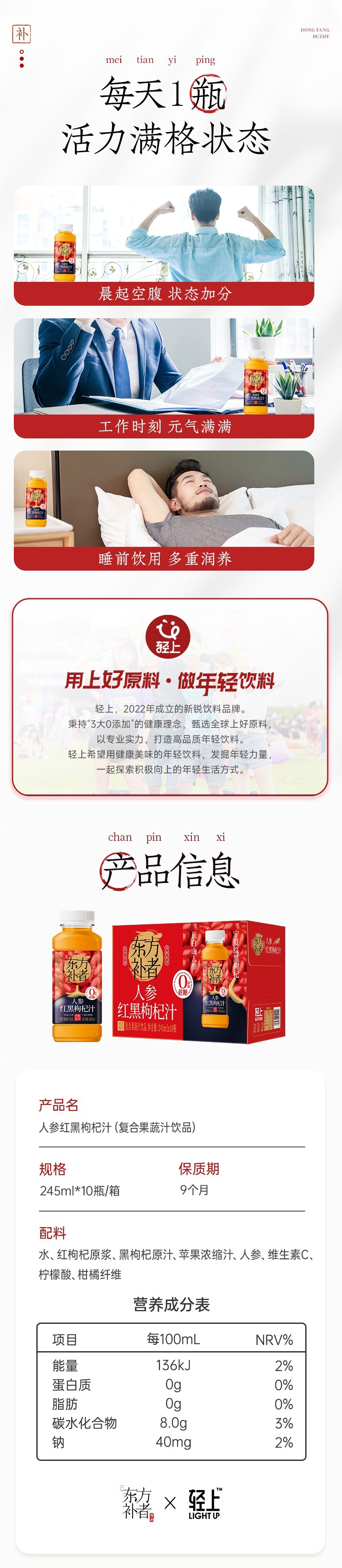 Восточный тоник женьшень красный и черный годжи сок научная пищевая питательная комплексная фруктово-овощная соковая напиток