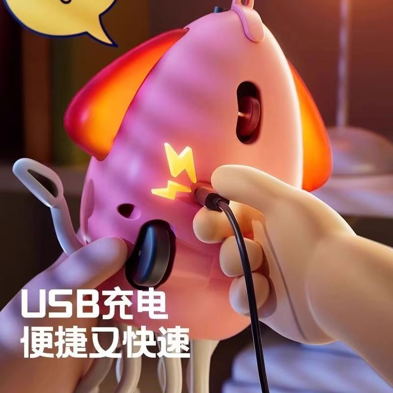 充电版是内置500毫安的充电锂电池,带有充电器,黄粉绿三色混装,有灯光音乐感应功能