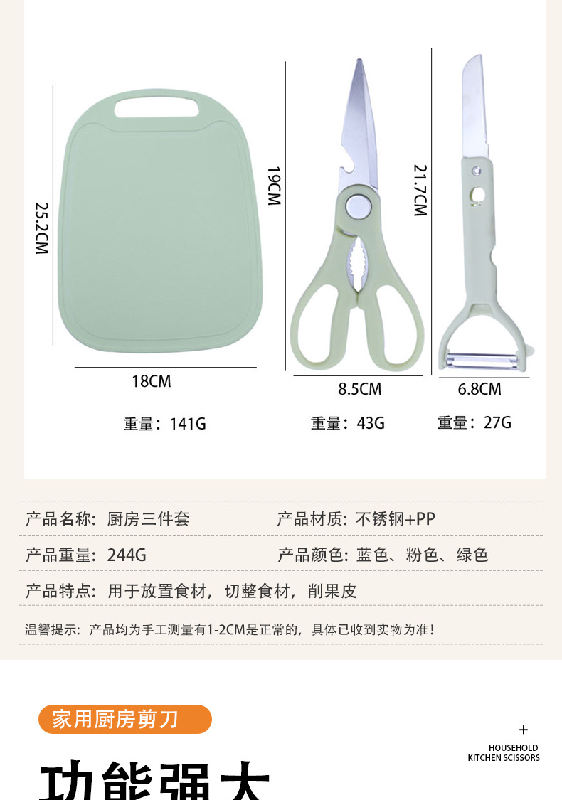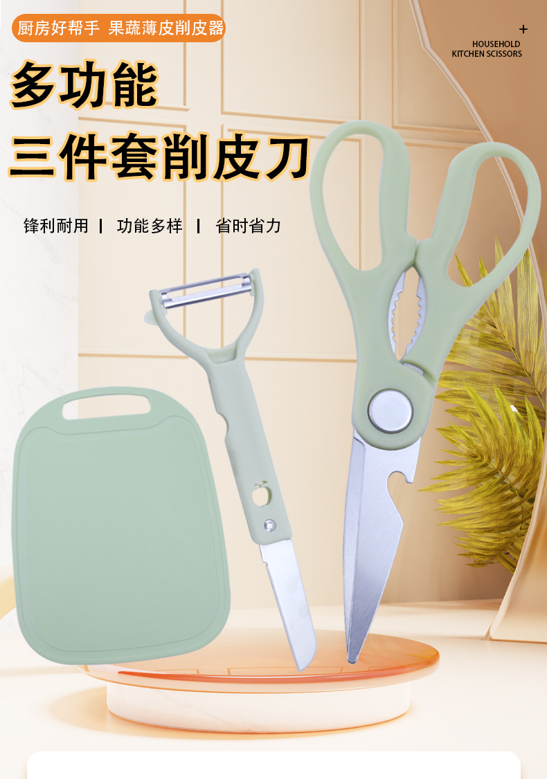 Оптовая продажа трех предметного набора ножей из нержавеющей стали и кухонных ножниц