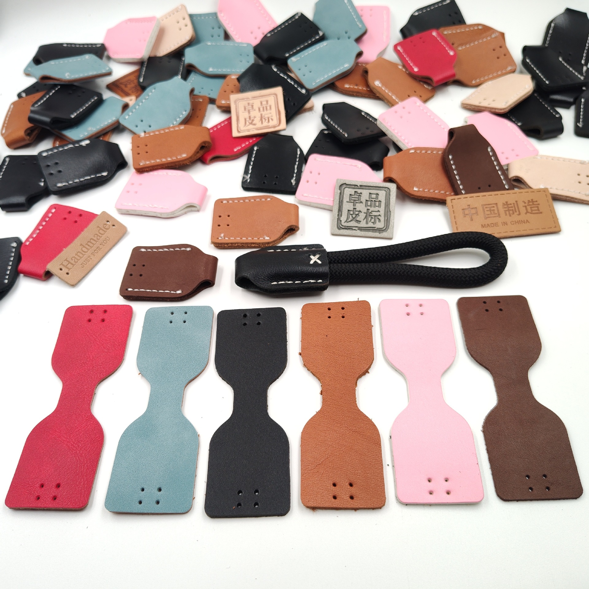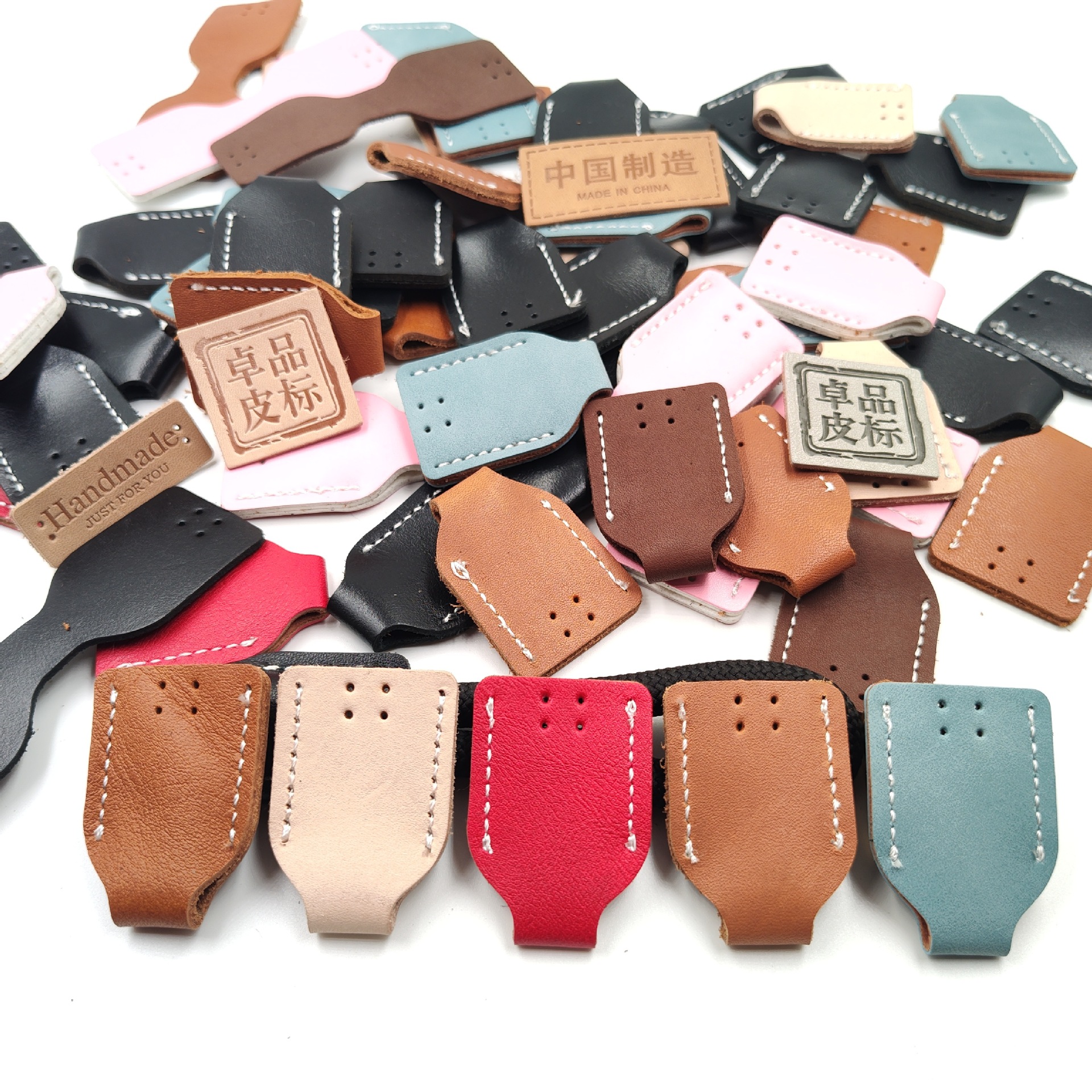 Индивидуальные кожаные петли с бесплатным образцом тиснения логотипа, цветные кожаные ярлыки, шнурки, специальные формы резки и шитья ярлыков
