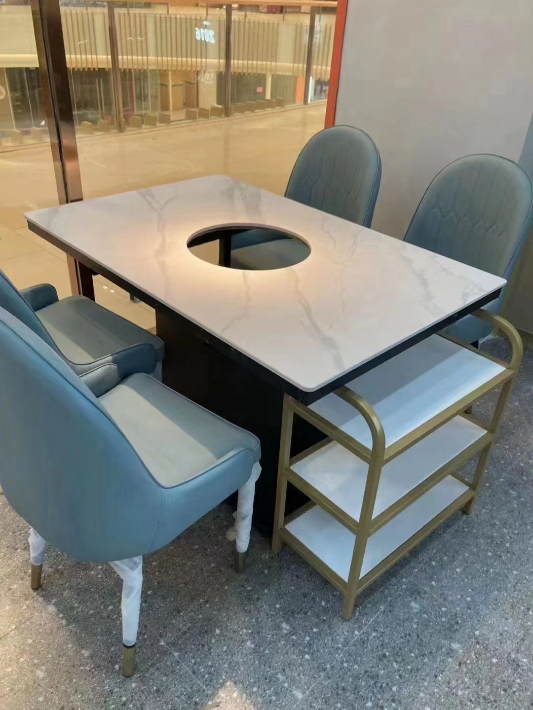 Бездымный гриль и комбинированный стол для хот-пота для барбекю и шашлыков, стол и стулья для ресторана хот-пота, стол для хот-пота из сланца