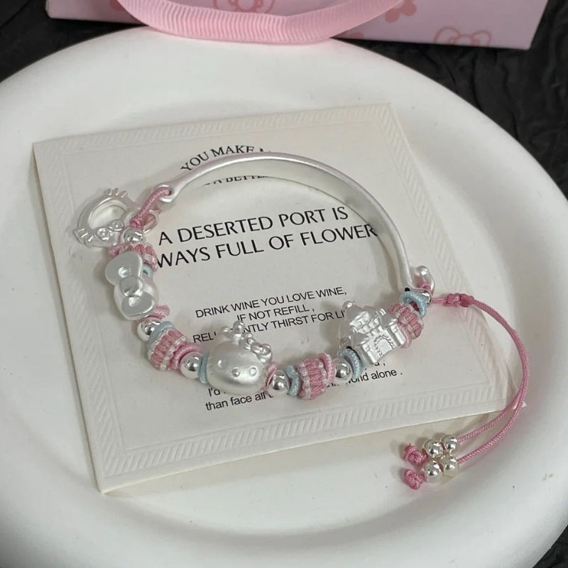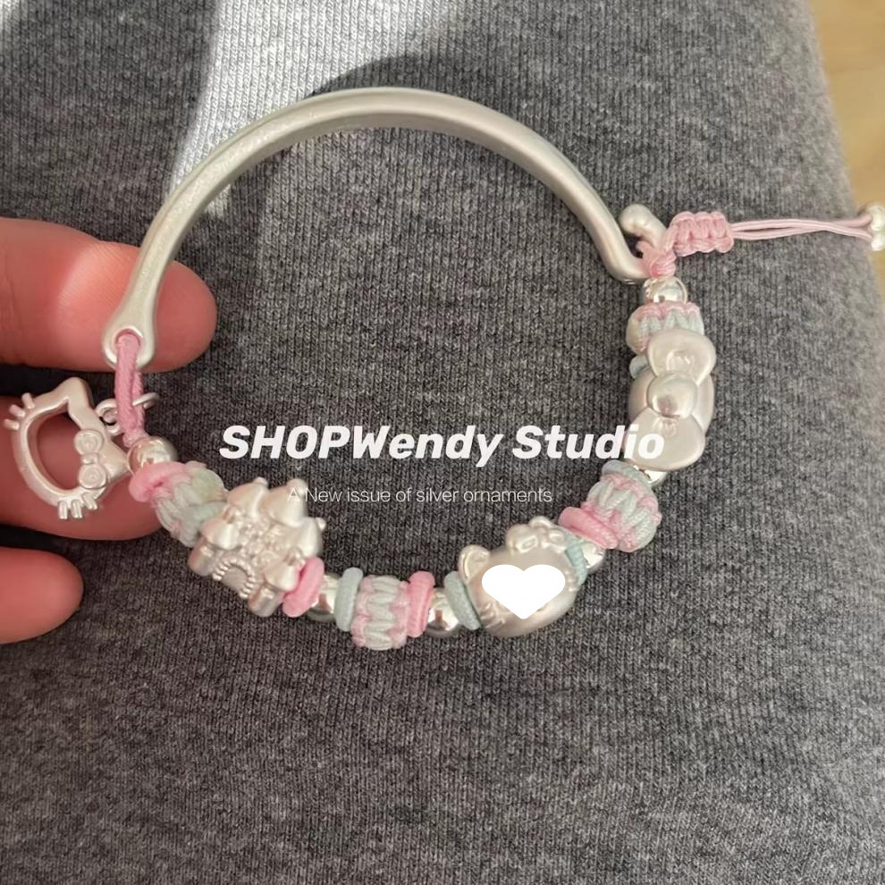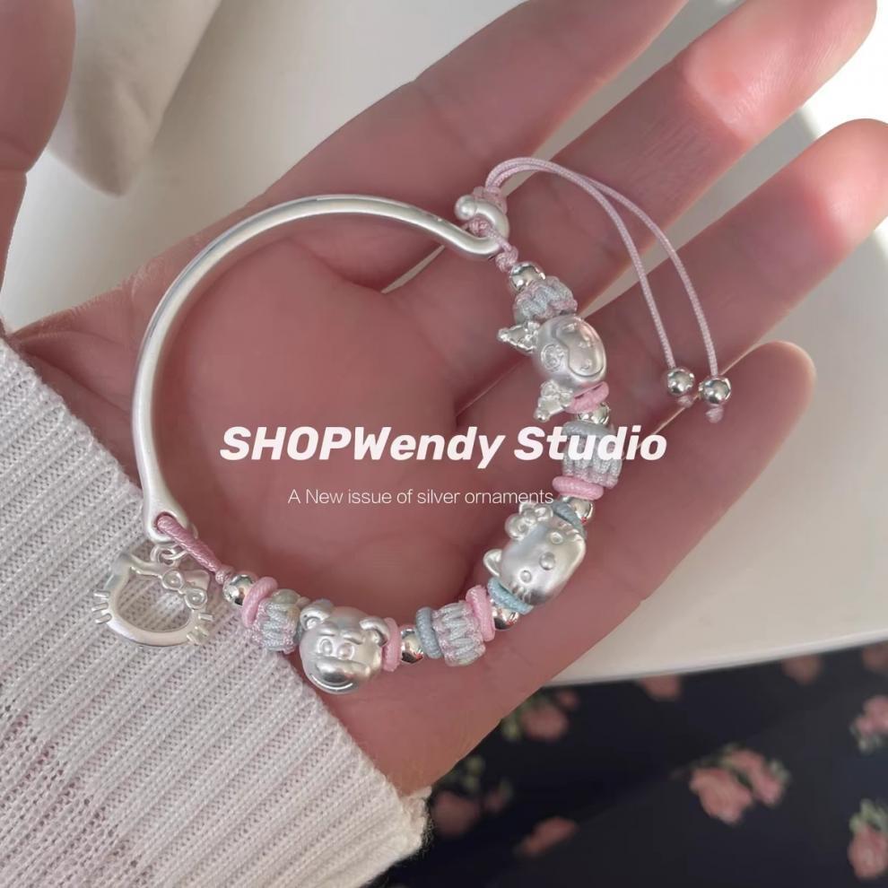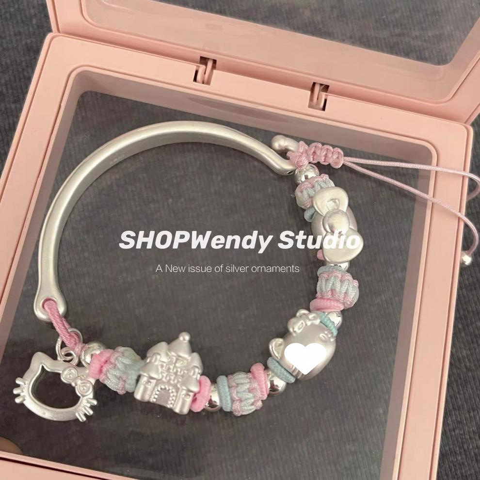 Магазин Уэнди | серебро 99 милый котенок замок бантик плетеный браслет регулируемый TYmy