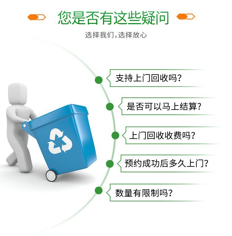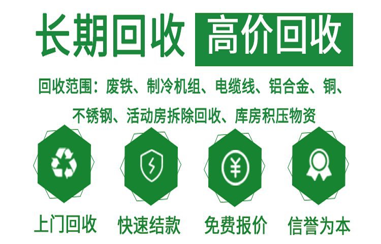 本公司承接回收各种废铁、钢铁、铜、铝、电线电缆、电机、电瓶、空调、制冷机组、电子元件、仪器设备、塑料、机床、废旧物资、医药设备、食品设备、饮料设备、化工设备、电脑、线路板等等,可提供上门服务,量大从优。 各类废品,精准报价。我们有的队伍上门施工作业,持证上岗,合理交易,快捷。我们从企业单位的需求出发,试通过本网络平台的建立整合物资市场,使可资源合理的流通和科学的再利用。