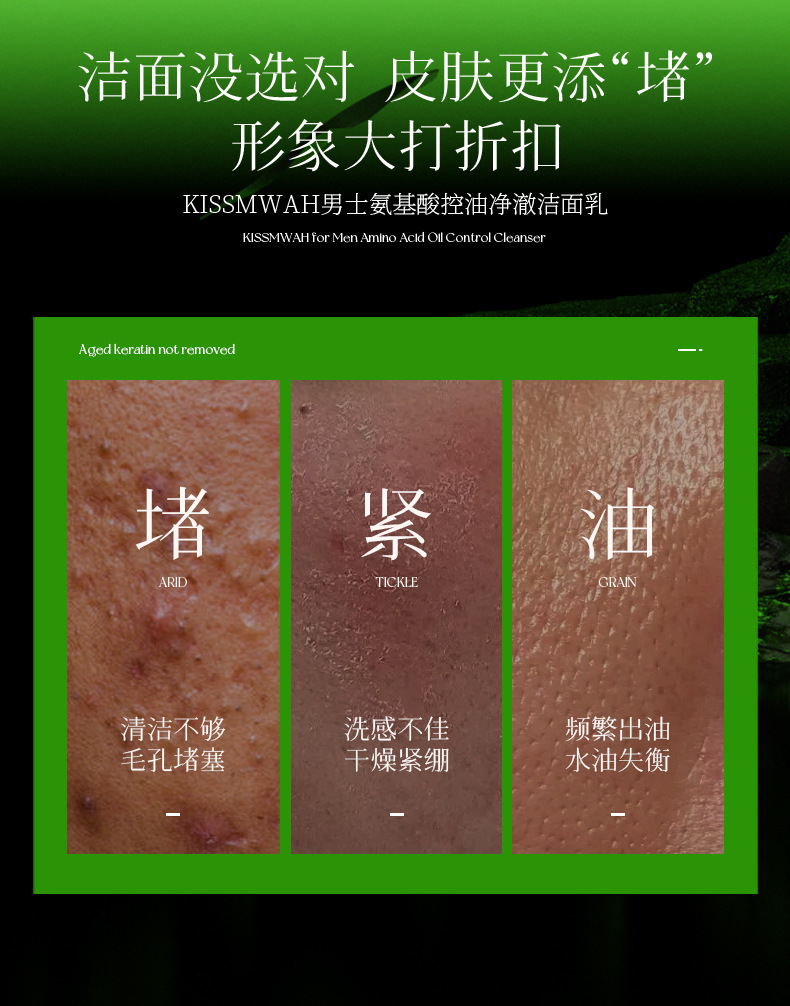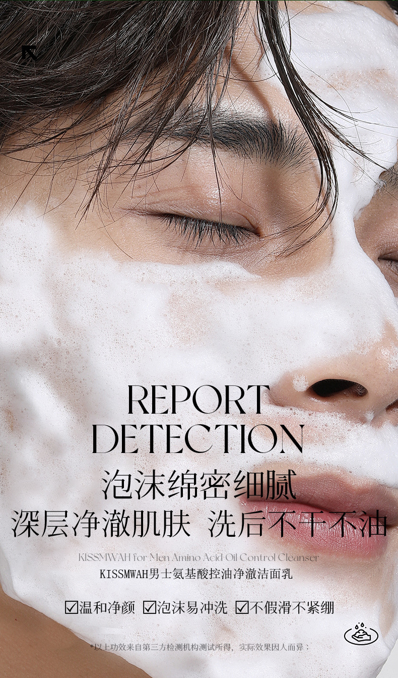 Очищающее средство для лица Kissmwah для мужчин 400г, аминокислотное, освежающее и контролирующее жирность