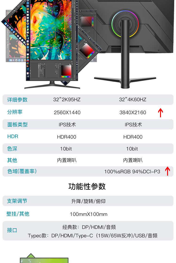 4K дисплей 2K 32 дюйма компьютерный настольный высокое разрешение IPS5 дизайн проекционный экран вертикальный ноутбук внешний Typc экран
