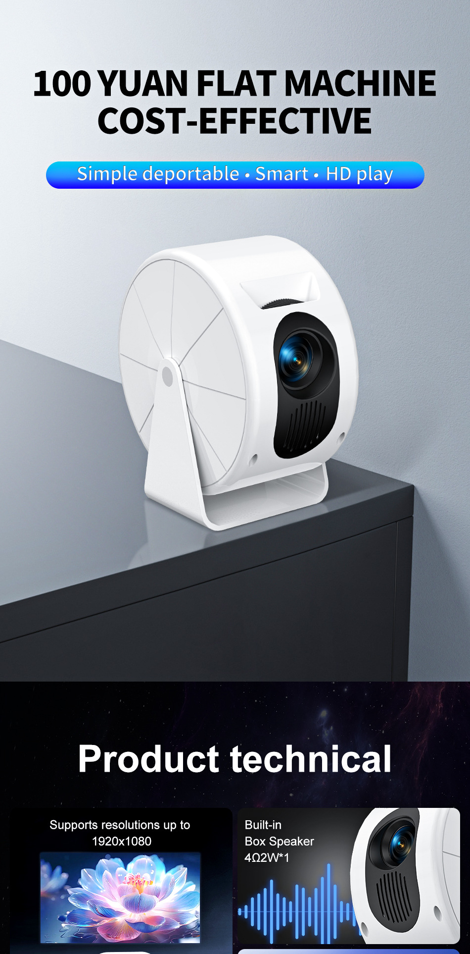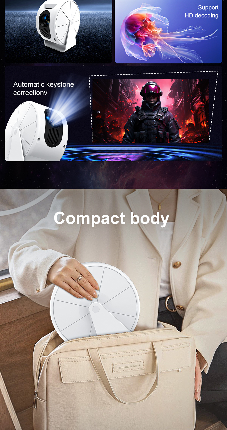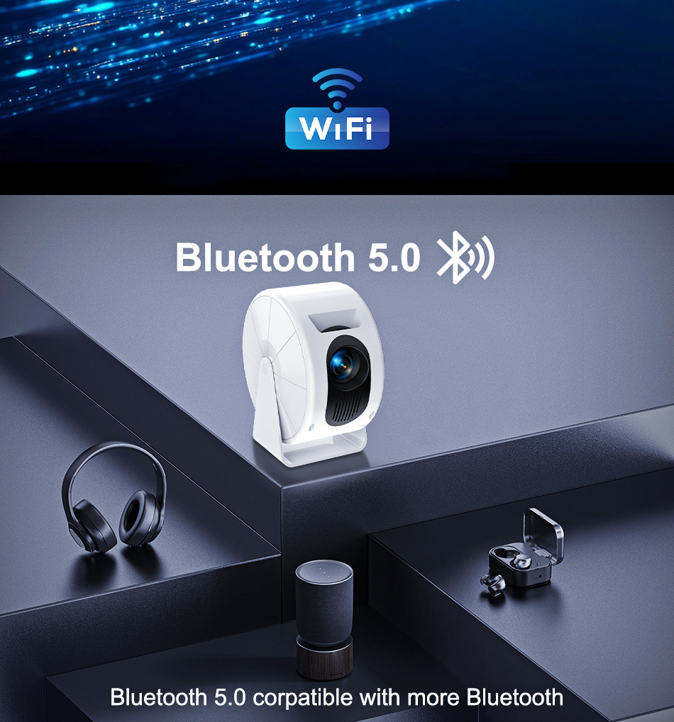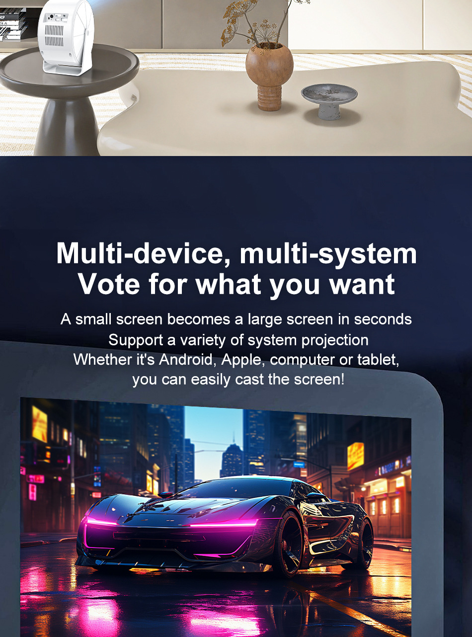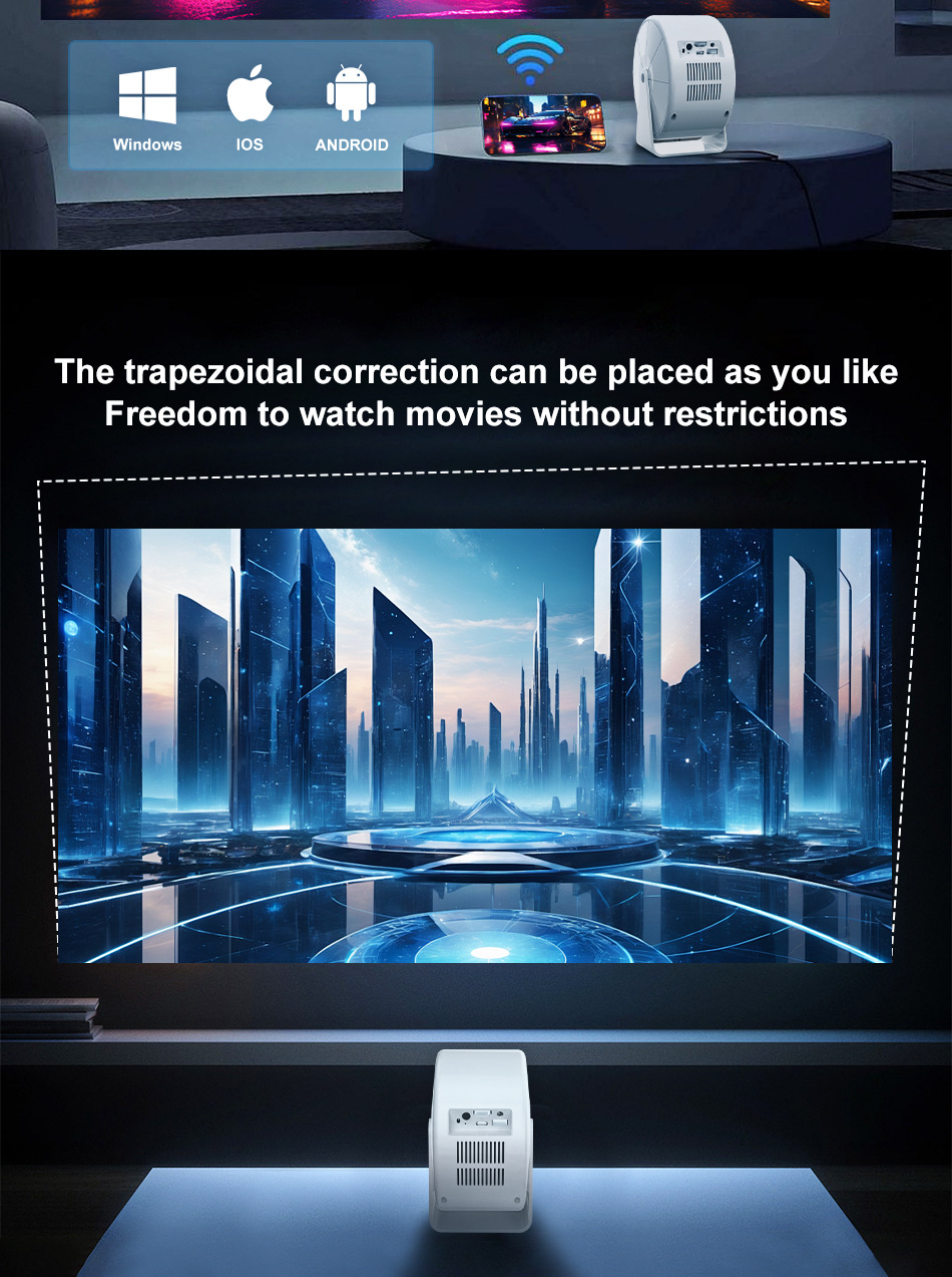 家用高清迷你便携投影仪 自动梯形 支持4K 60fpsH.265/VP9视频解码 1080p 苹果手机 安卓手机无线镜像同屏 支持多国语言 白天直投智能投影机 云台投影仪 家用卧室投墙 便携高清 迷你无���投影仪