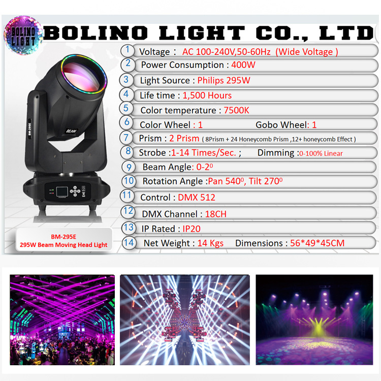 Движущийся светильник 295W, бар, сценическое выступление, точечный и размытие