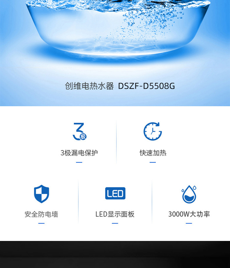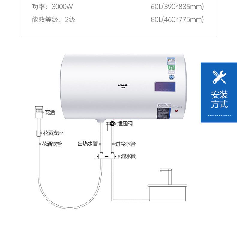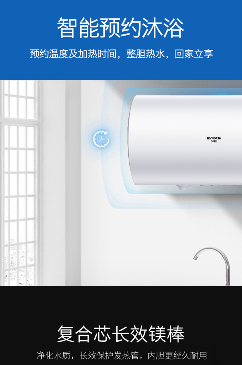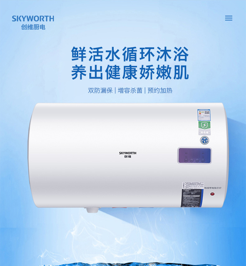 Электрический водонагреватель Skyworth, 50-60 литров, большой объем хранения