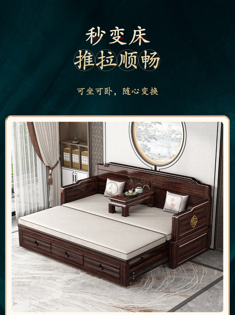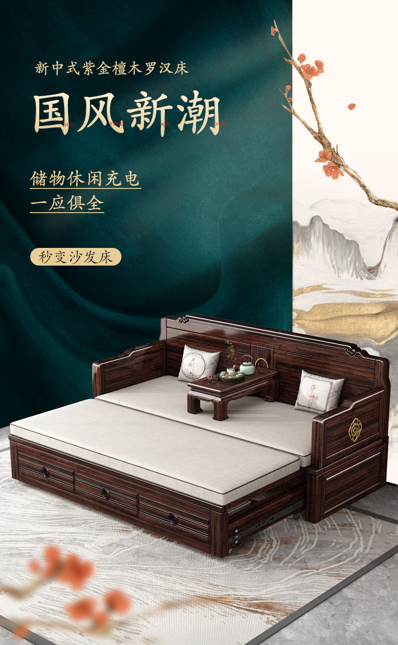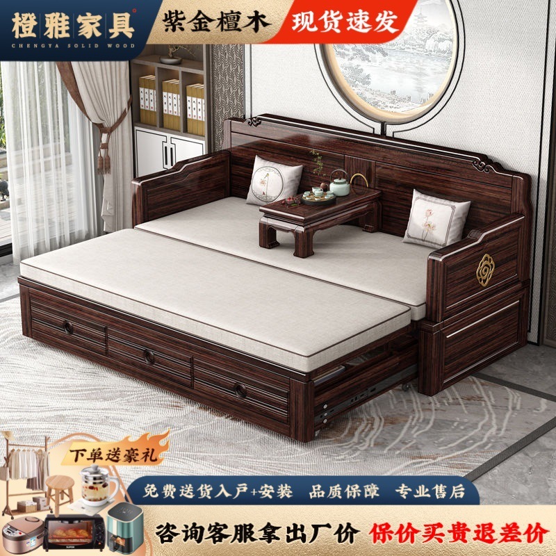Кровать Лохань из массива дерева, сдвижная, высококачественная, складная диван-кровать, двухцелевое использование, комплект с фиолетовым сандаловым деревом для гостиной