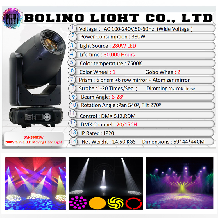 280W 3 в 1 движущийся светильник, свадебный бар, BSW 280W LED
