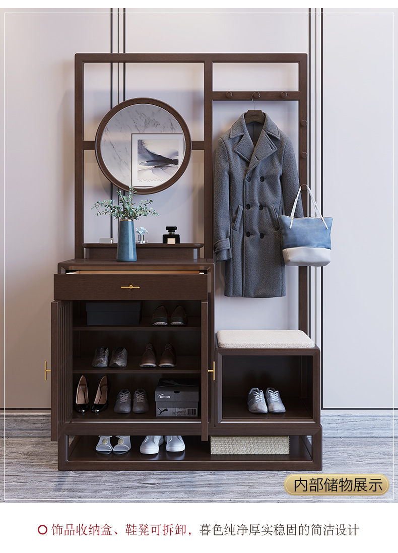 Новый китайский стиль, шкаф для обуви из массива дерева, многофункциональный шкаф для хранения, вешалка для одежды в гостиной, напольный табурет для смены обуви