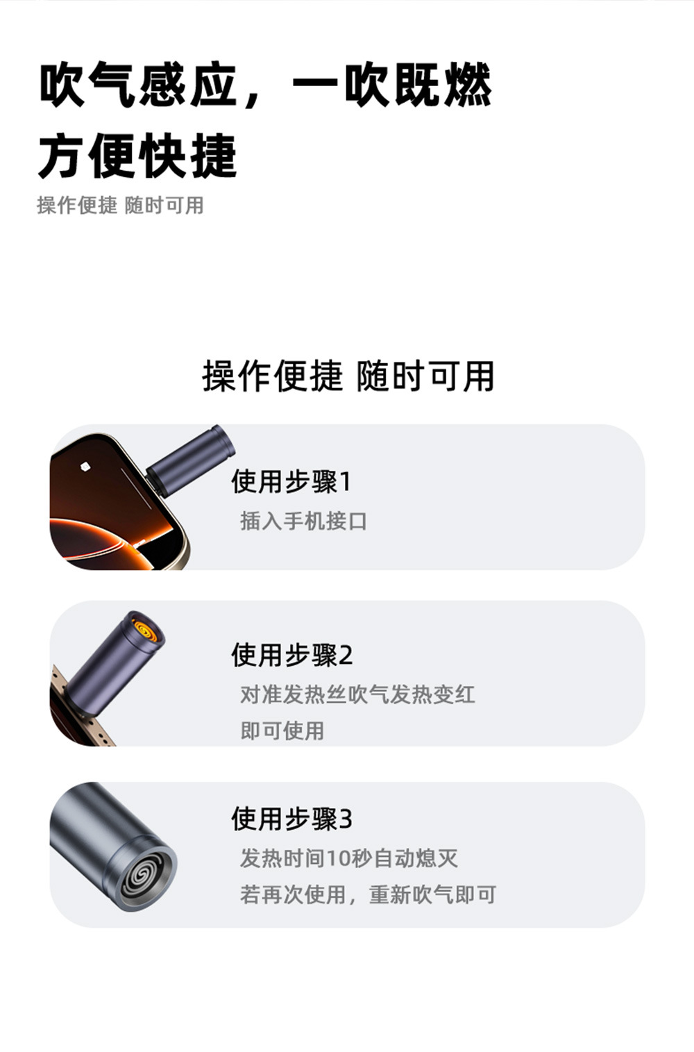 Зажигалка с воздушным потоком, адаптер Type-C, мини-игнатор, портативная ветрозащитная зажигалка, можно взять на борт самолета