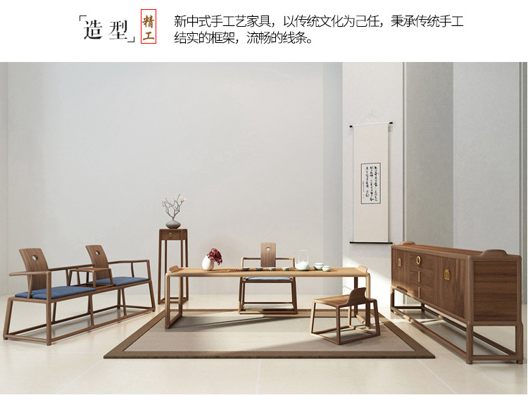 Новый китайский стиль Комбинация стола и стульев из массива дерева для чайной комнаты
