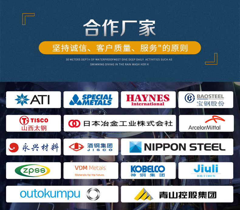 上海(隆康)有限公司总部位于上海,是国内知名的钢材服务商之一。与欧美日本等各大钢厂有着广泛的业务来往,我们汇聚了国内外各大钢厂的资源,在上海仓库,常备大量进口现货库存,确保了我们能够为客户供应各种焊材、铜合金、不锈钢、镍基合金、哈氏合金、高温合金及各种欧标钢板、优质中厚板、欧标管材和型材。我们期盼与您的合作,并将不断努力和提高,为您提供安全和便捷的高品质服务。