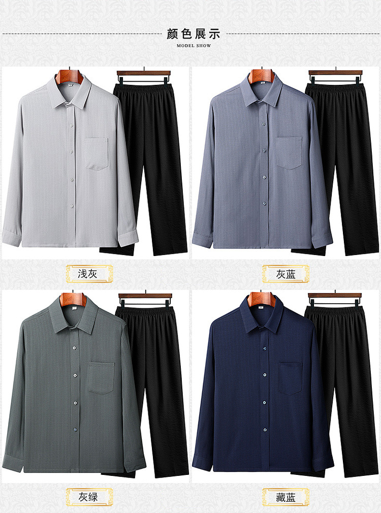 Рубашки с длинным рукавом для мужчин среднего и пожилого возраста, летние рубашки с отложным воротником, свободные, однотонные, легкие и дышащие, для пожилых