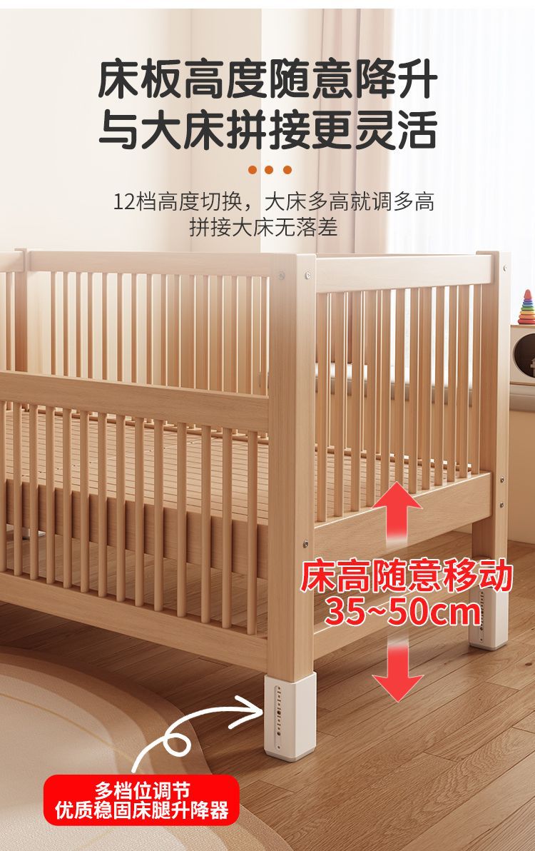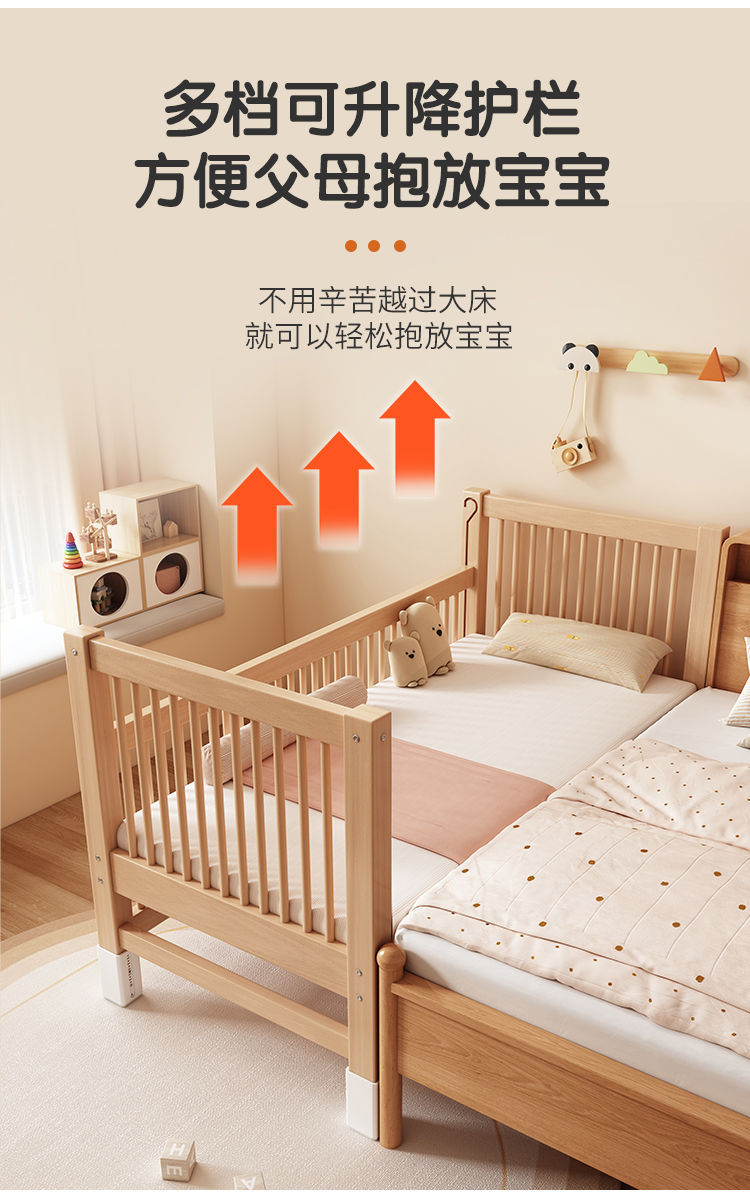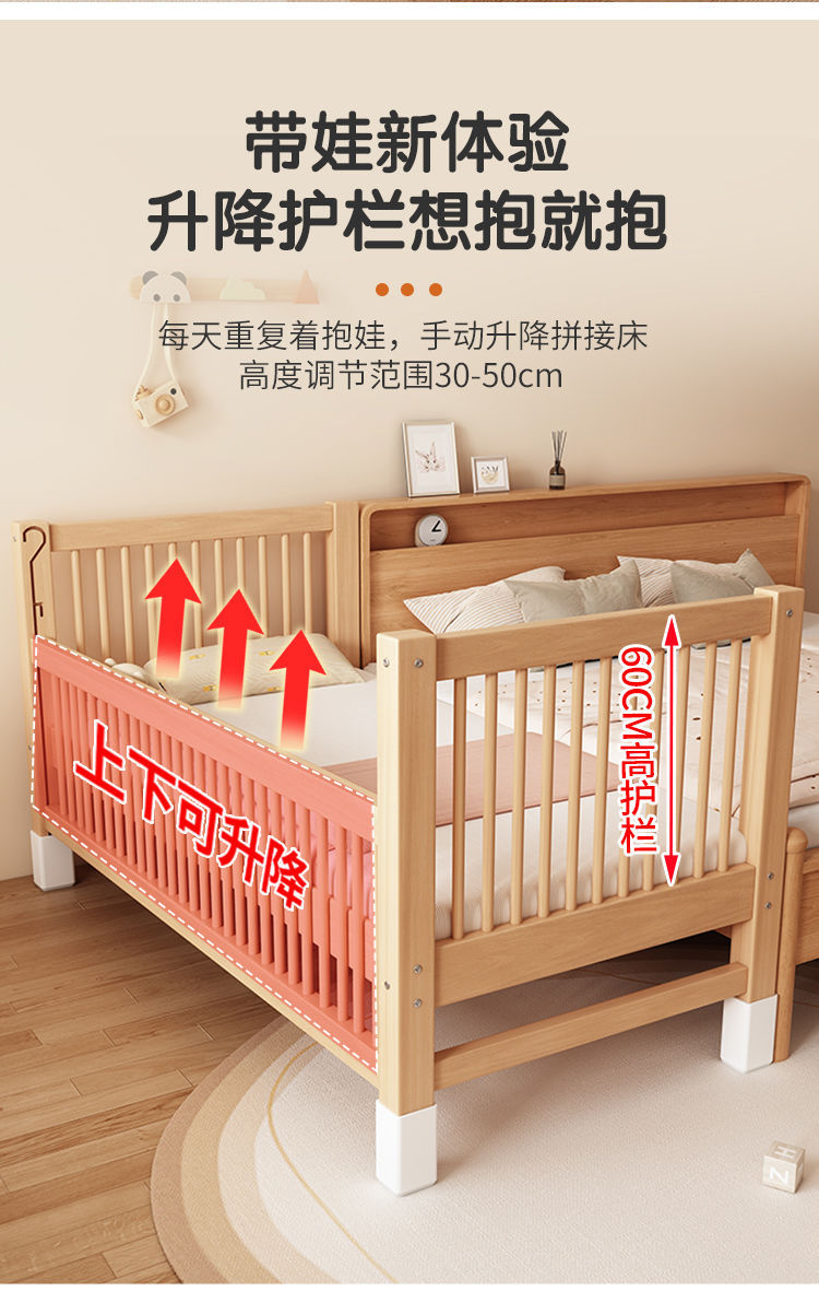 Детская кровать из бука с подъемным ограждением, сплошная, большая кровать для детей