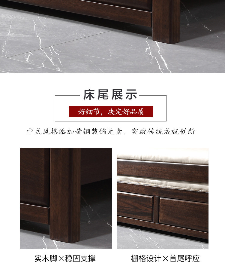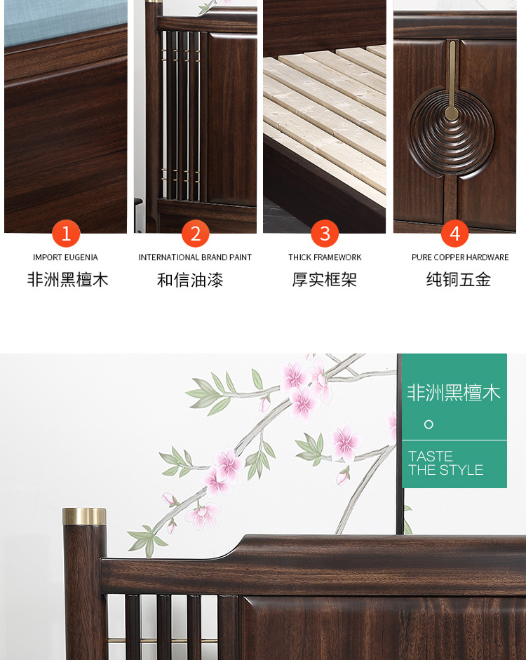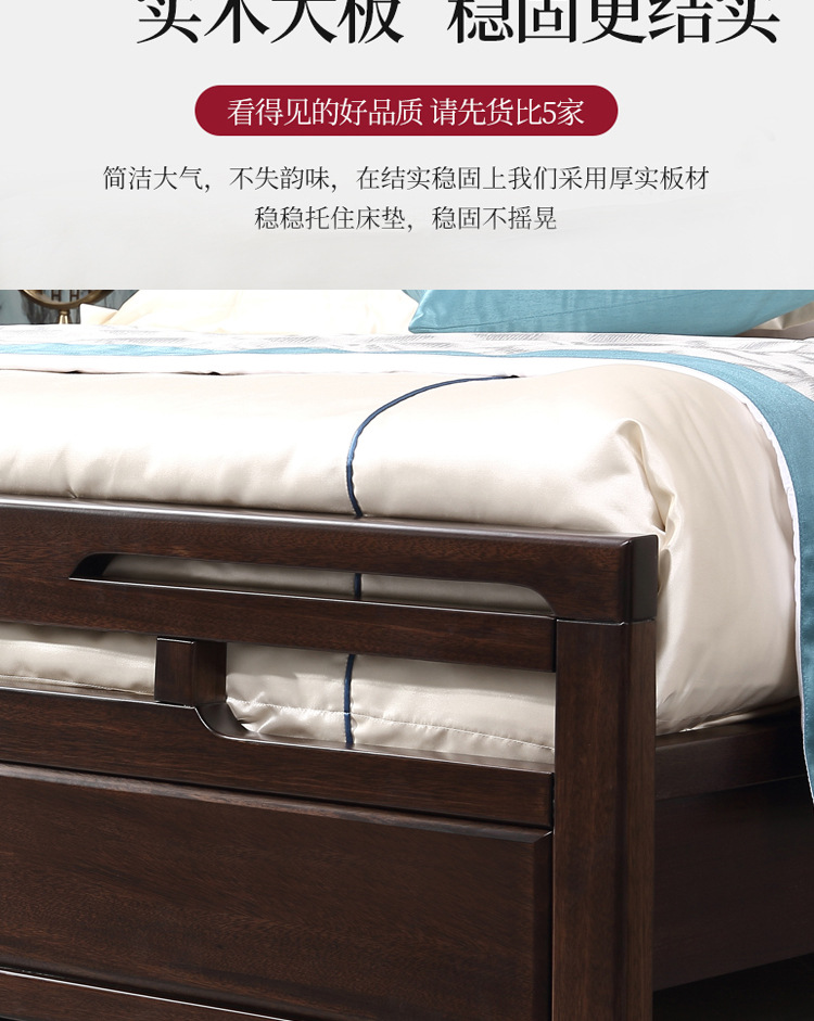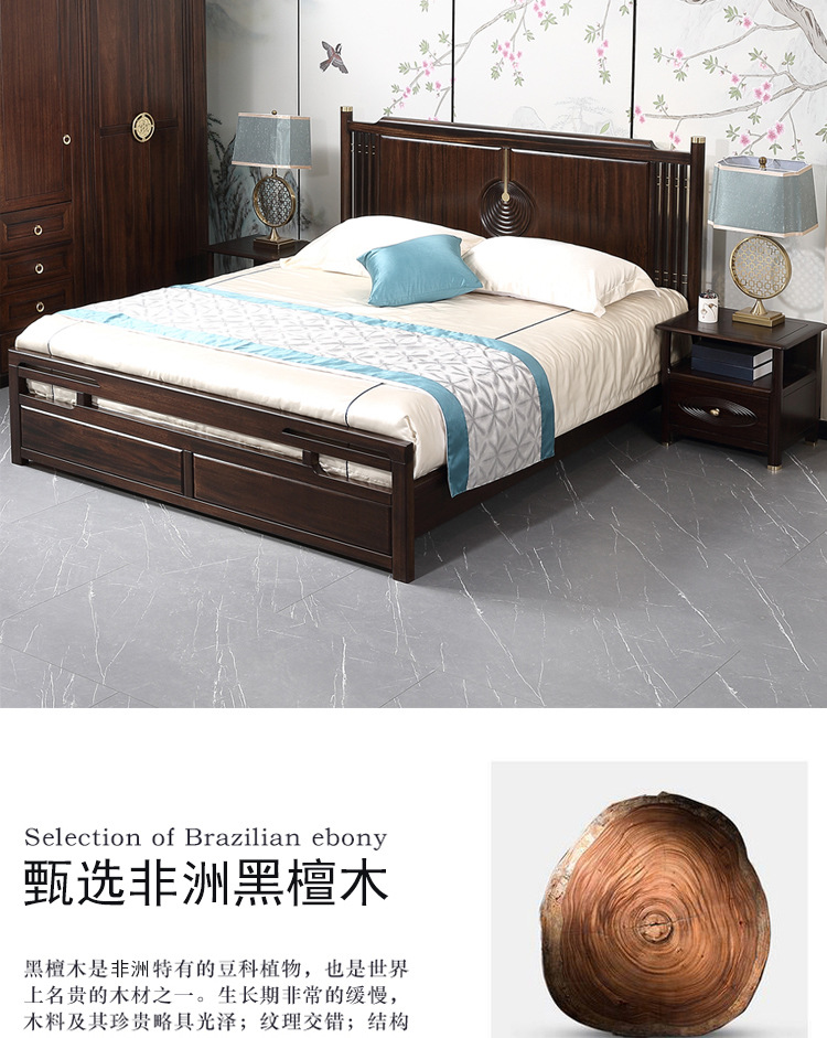 Кровать с высоким ящиком из черного дерева, современный минималистичный стиль, легкая роскошная кровать 1.8м, новая китайская стильная кровать из массива дерева