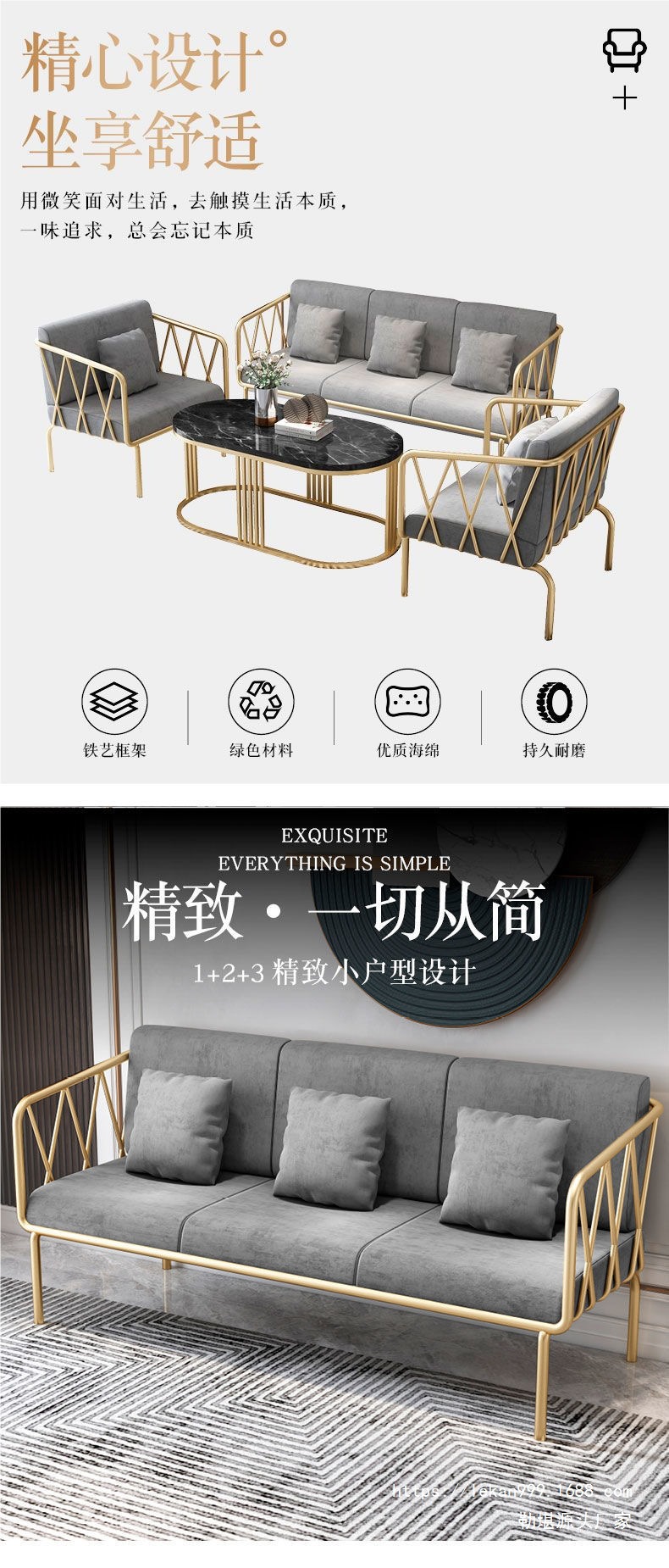 Современный простой легкий люкс, золотой железный диван, для магазина одежды, интернет-знаменитости, диван-стул, кофейный столик