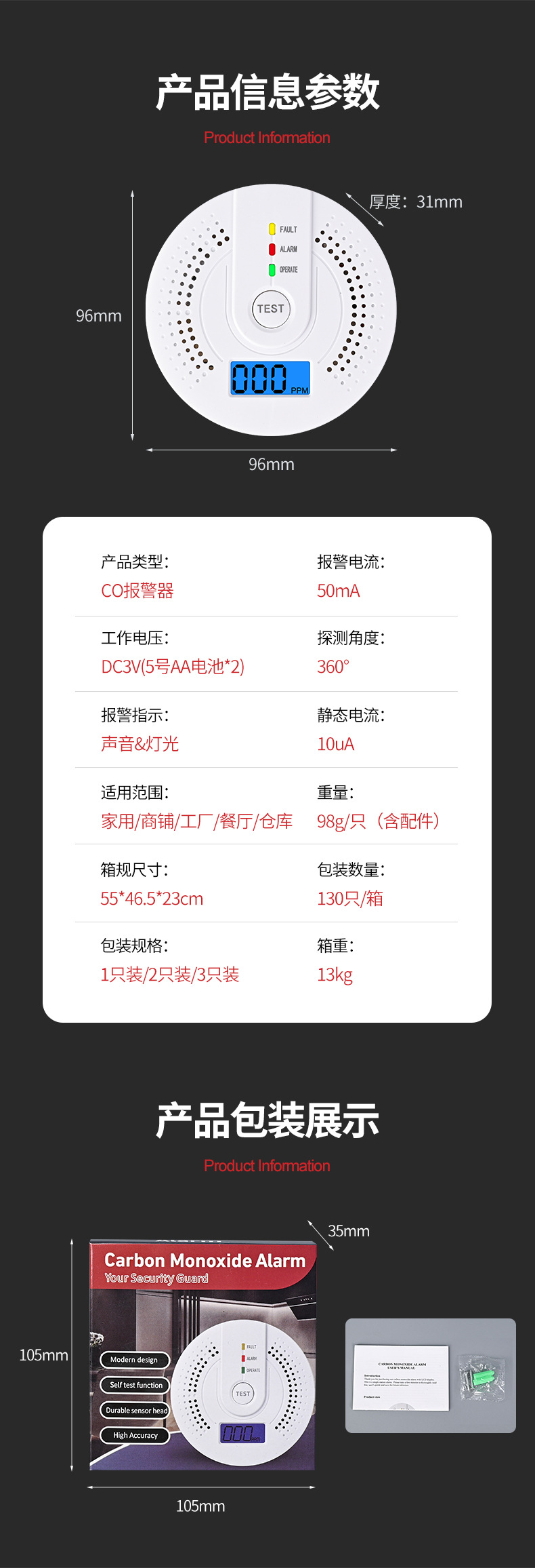 Номер товара Co alarm