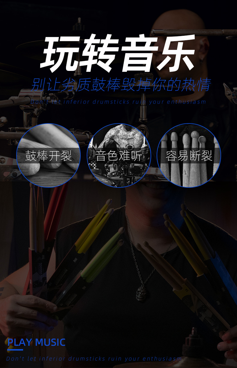 Кросс-бордерный набор барабанов, палочки 7A, профессиональные и детские палочки из массива дерева