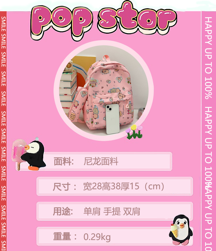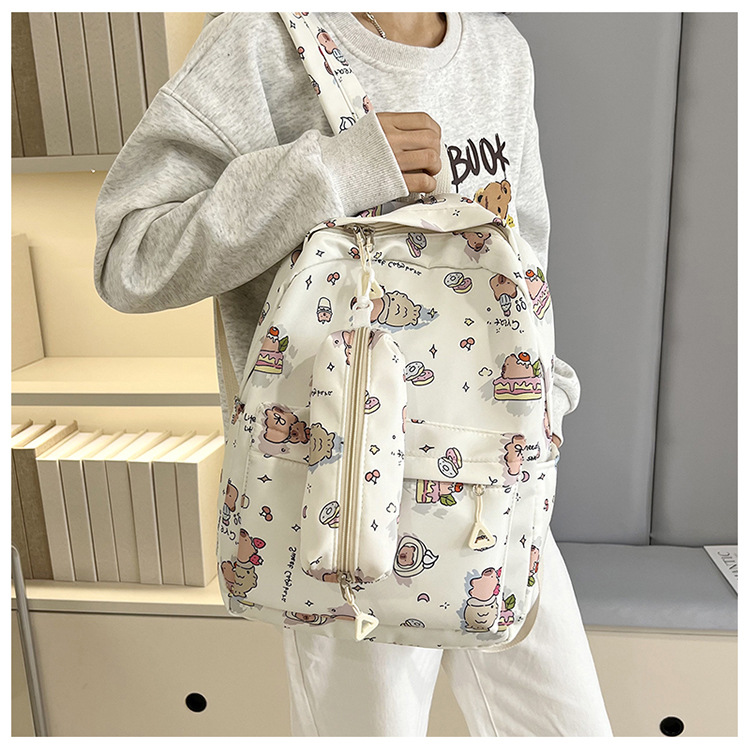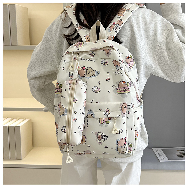 Милый рюкзак с принтом капибара, большой вместимости, ультра-легкий нейлоновый рюкзак для старшеклассниц и учениц средней школы, оптовая продажа