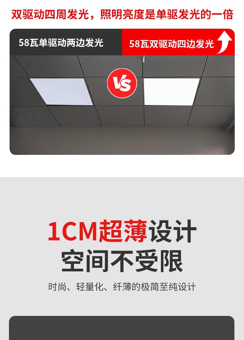 ![]() | White upgraded dual drive [ultra-thin 1cm] 595x595 imported lamp beads super bright anti-glare 58 watts | ¥58.8 / ≈ 715 ₽ | 3999 | 5816439040826 | |
