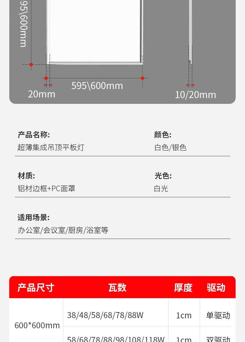 ![]() | Silver upgraded dual drive [ultra-thin 1cm] 595x595 imported lamp beads super bright anti-glare 68 watts | ¥63.8 / ≈ 776 ₽ | 3999 | 5816439040834 | |