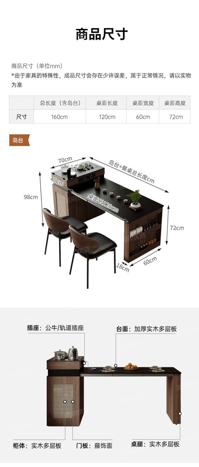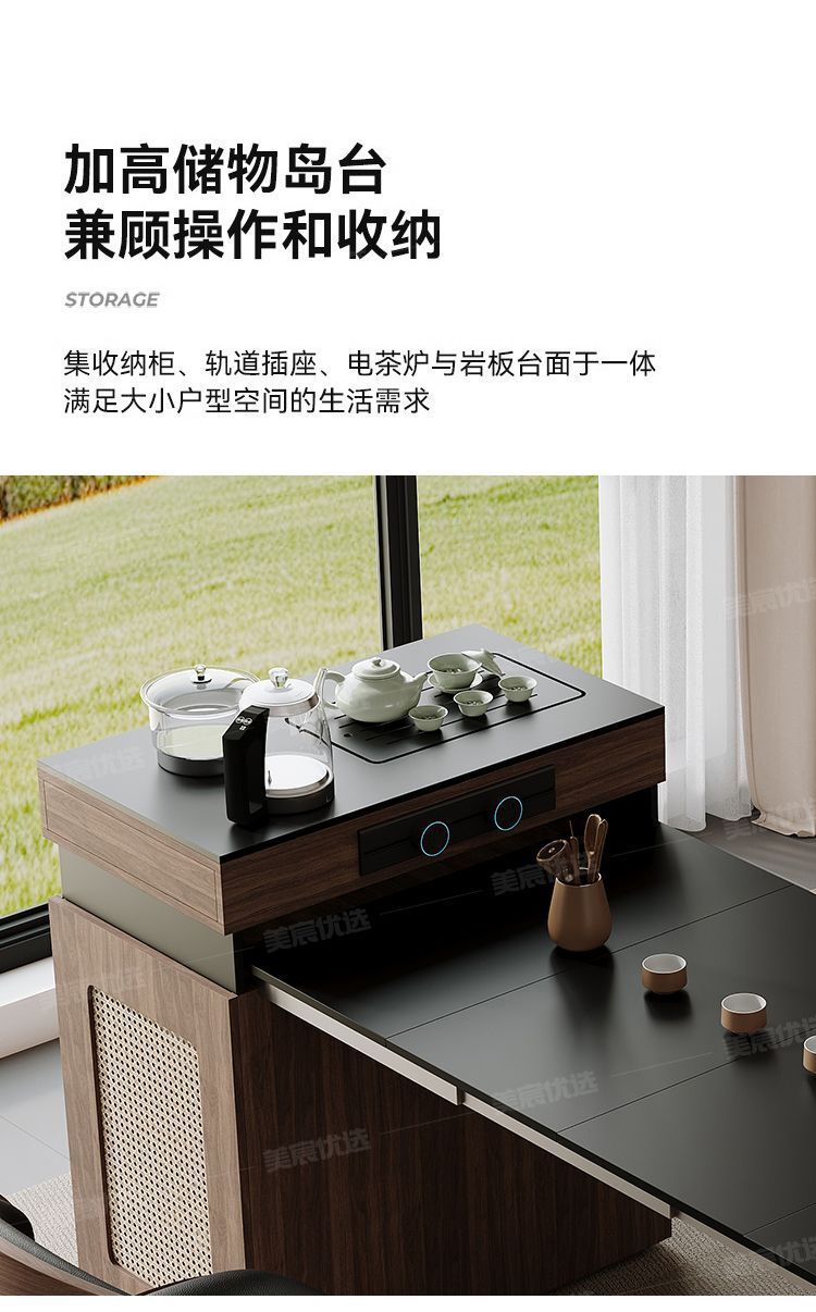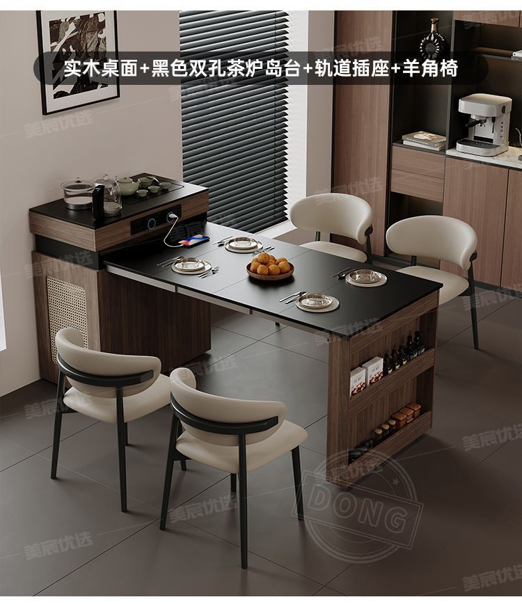 Новый островной обеденный стол, интегрированный, раскладной, из массива дерева, многофункциональный для чаепития и еды
